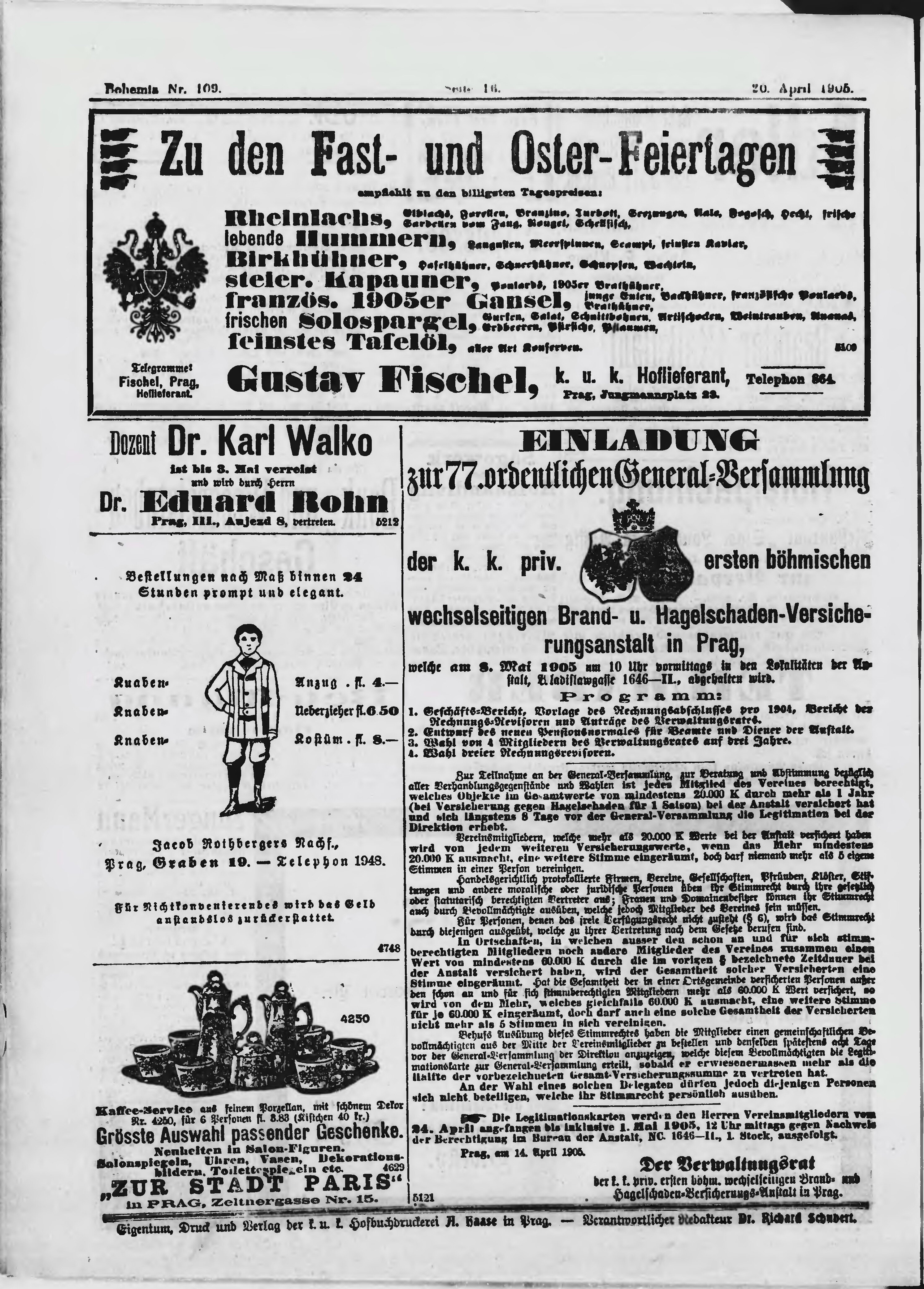 * Datum vydání výtisku: 20.4.1905 Číslo výtisku: 109 Poznámky k výtisku: ranní vydání;