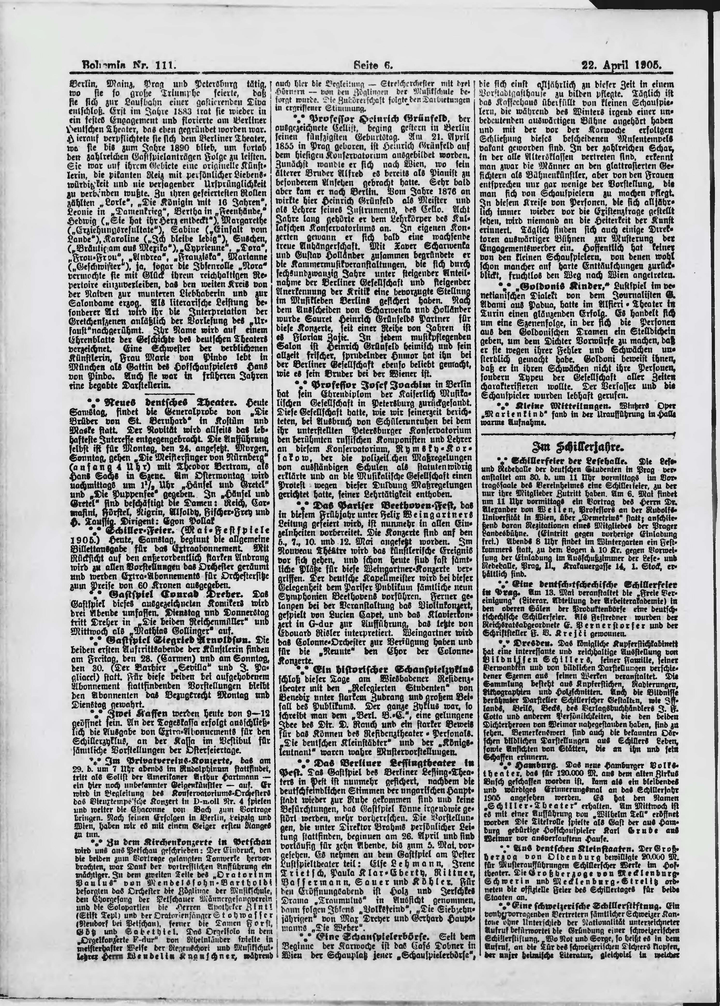 * Datum vydání výtisku: 22.4.1905 Číslo výtisku: 111 Poznámky k výtisku: večerní vydání není k dispozici