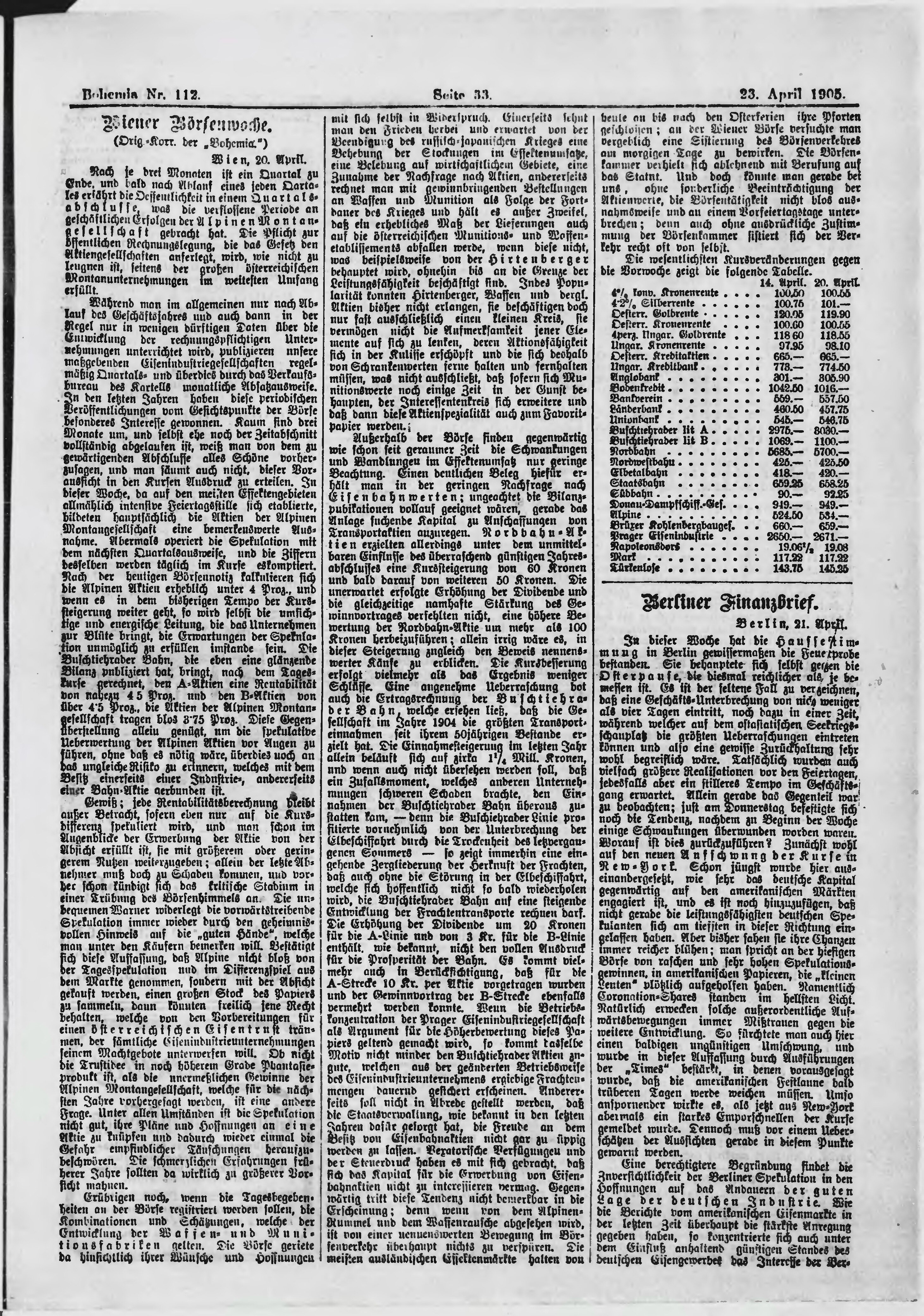 * Datum vydání výtisku: 23.4.1905 Číslo výtisku: 112 Poznámky k výtisku: ranní vydání;