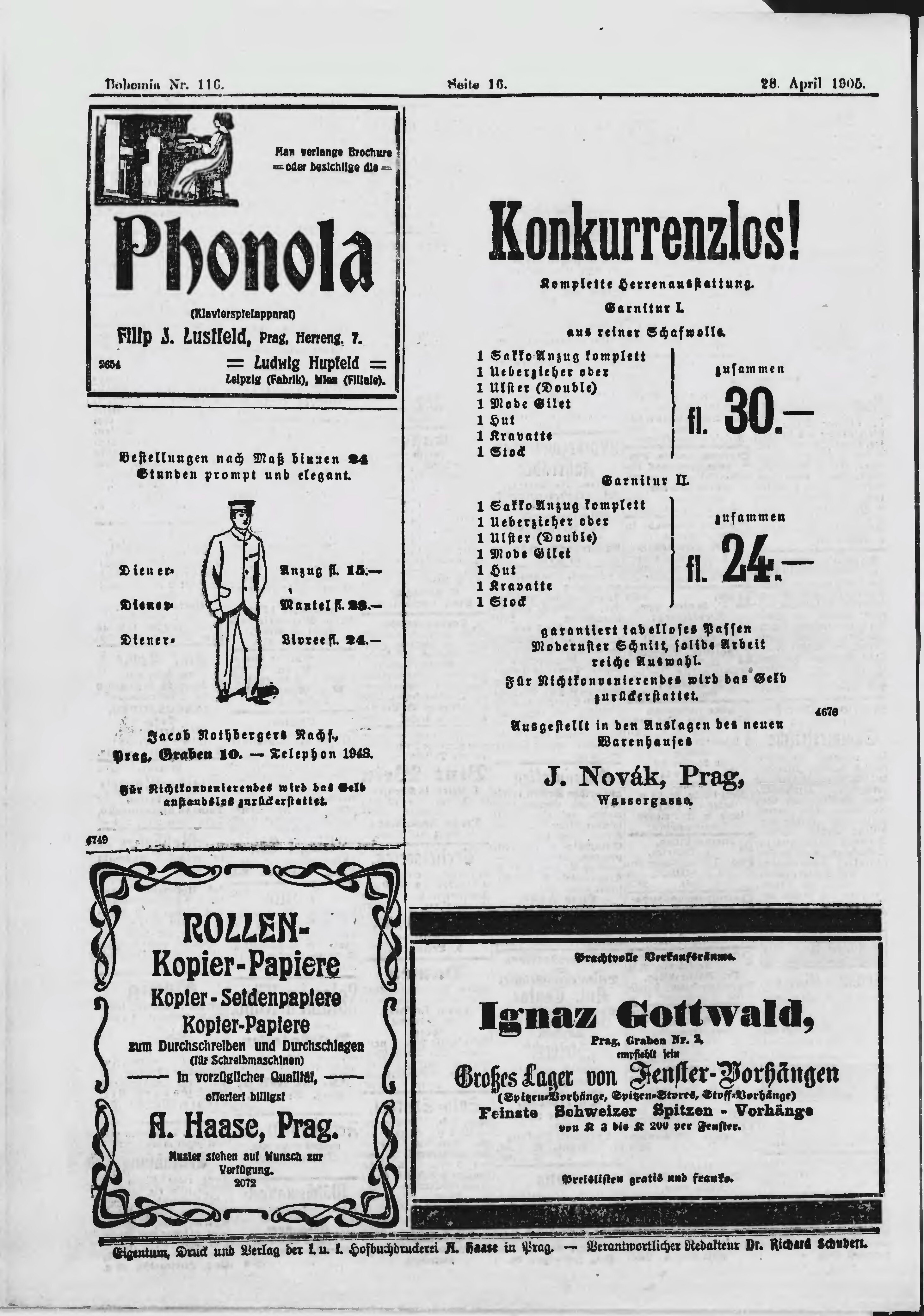 * Datum vydání výtisku: 28.4.1905 Číslo výtisku: 116 Poznámky k výtisku: ranní vydání;