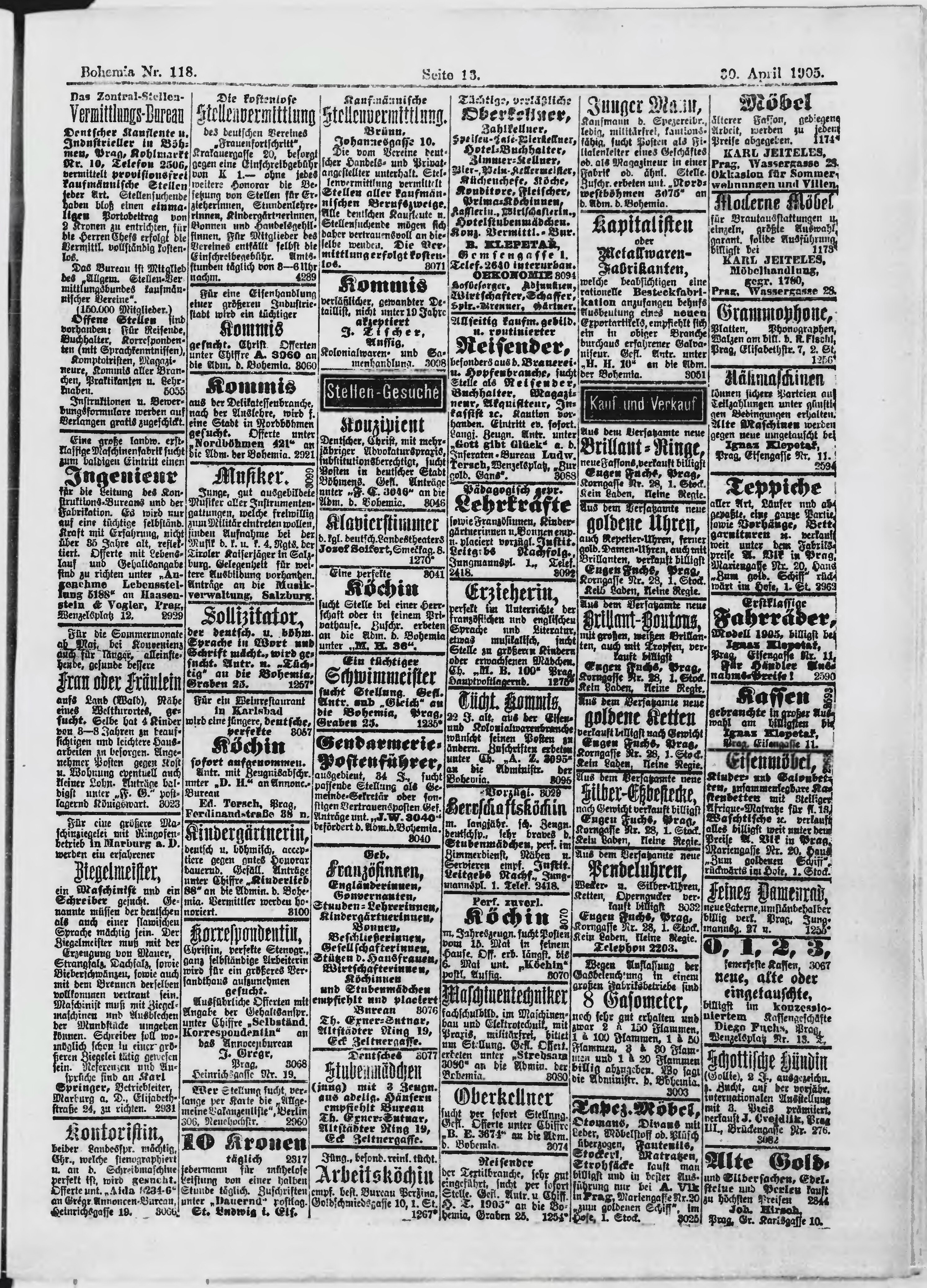 * Datum vydání výtisku: 30.4.1905 Číslo výtisku: 118 Poznámky k výtisku: ranní vydání;