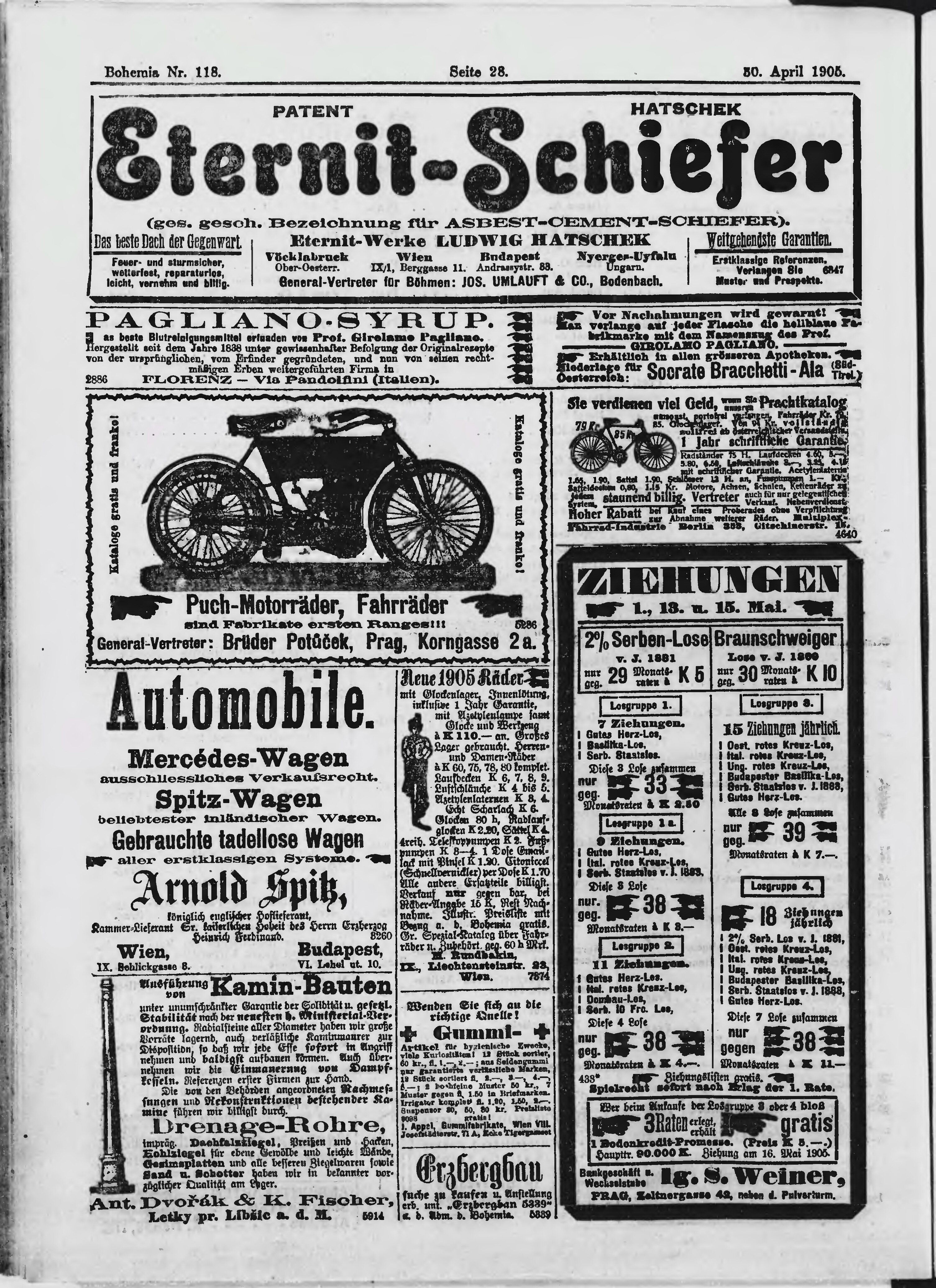* Datum vydání výtisku: 30.4.1905 Číslo výtisku: 118 Poznámky k výtisku: ranní vydání;