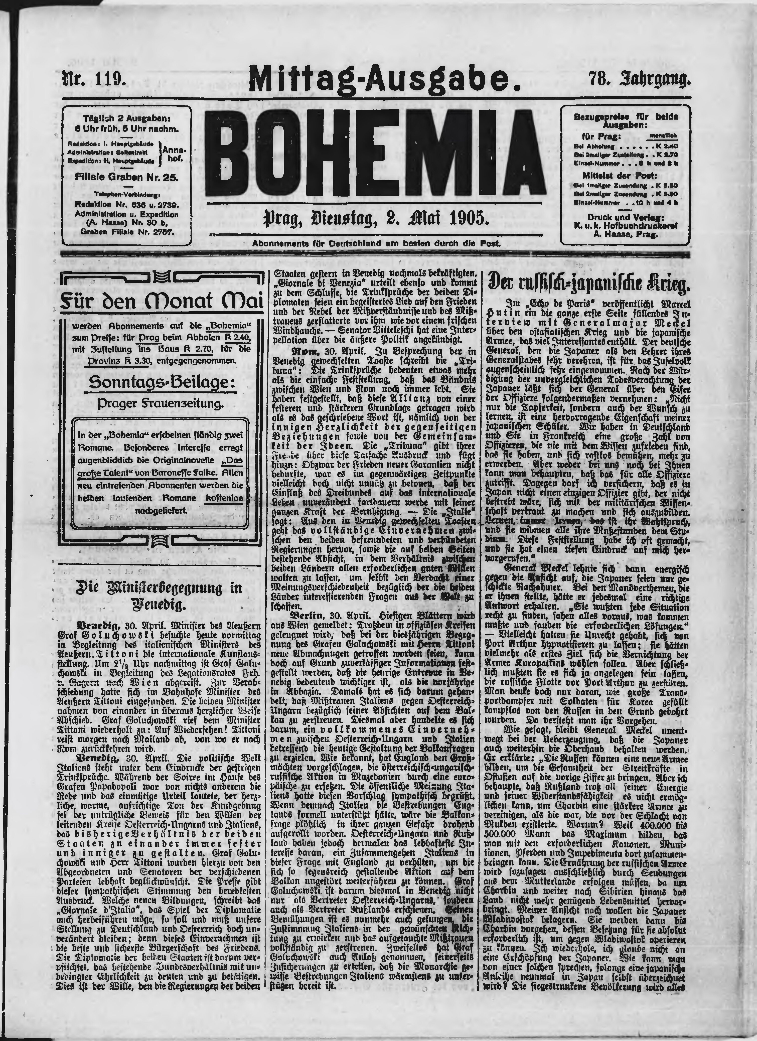 * Datum vydání výtisku: 2.5.1905 Číslo výtisku: 119 Poznámky k výtisku: polední vydání;