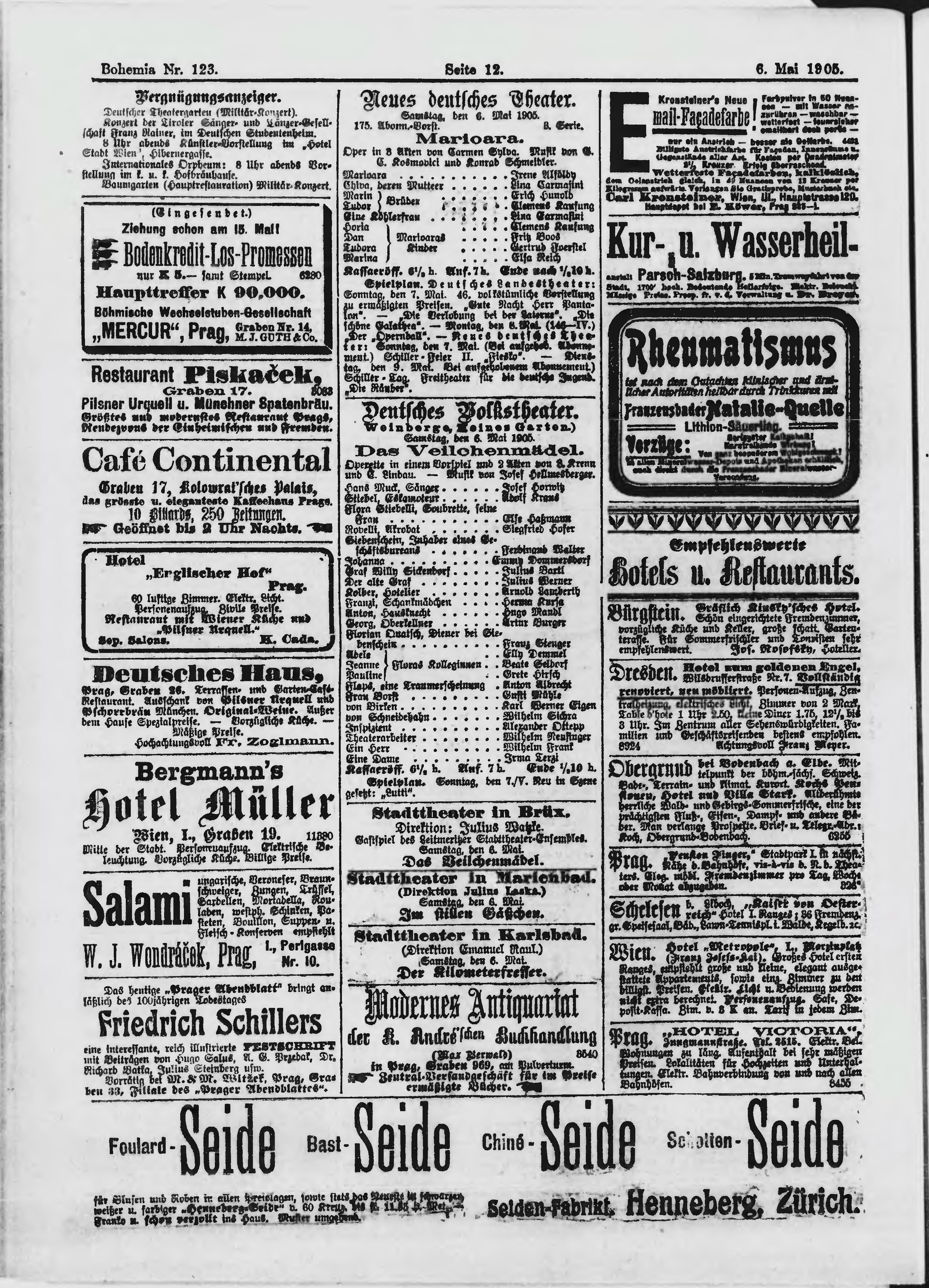 * Datum vydání výtisku: 6.5.1905 Číslo výtisku: 123 Poznámky k výtisku: ranní vydání;