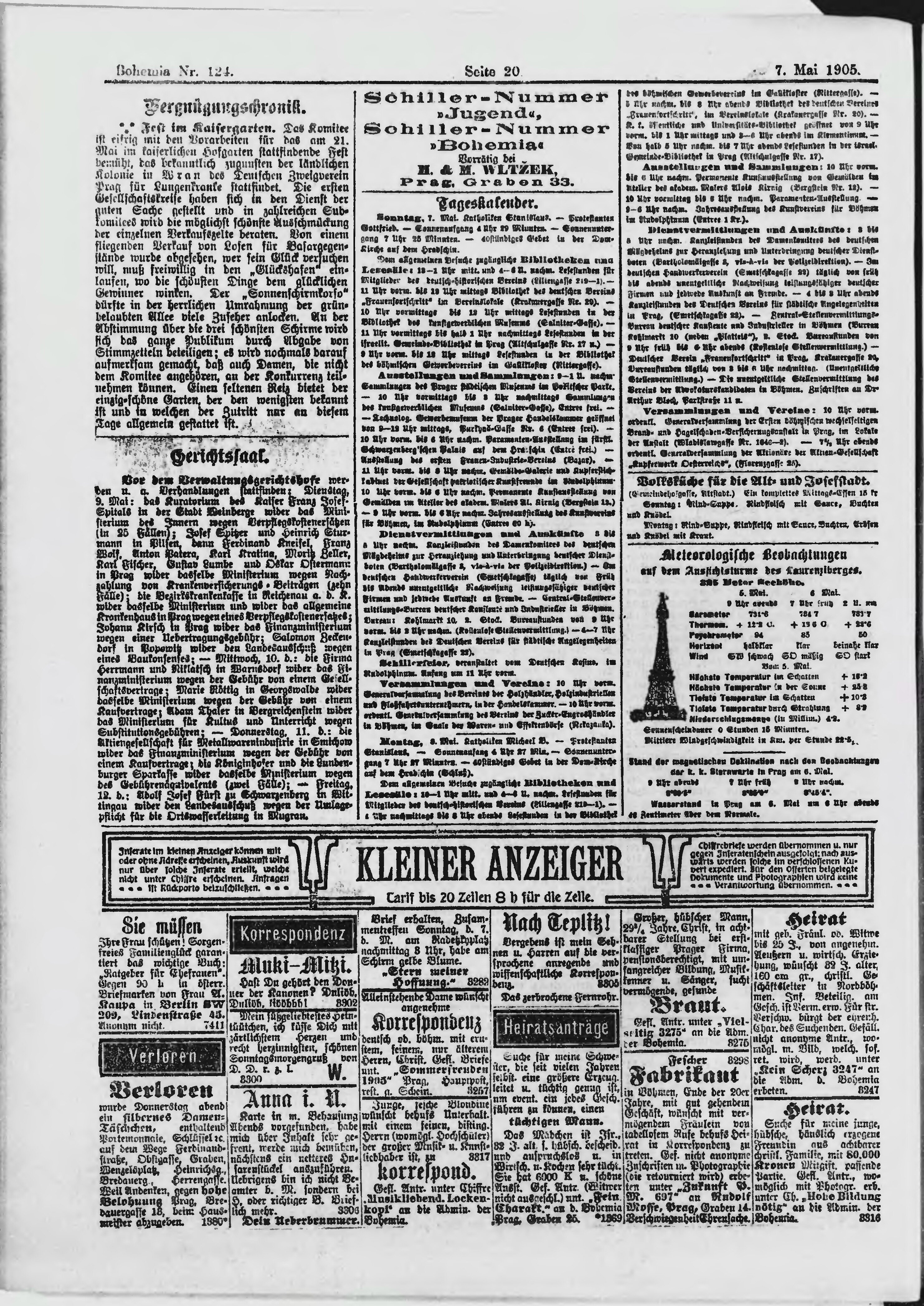 * Datum vydání výtisku: 7.5.1905 Číslo výtisku: 124 Poznámky k výtisku: ranní vydání;