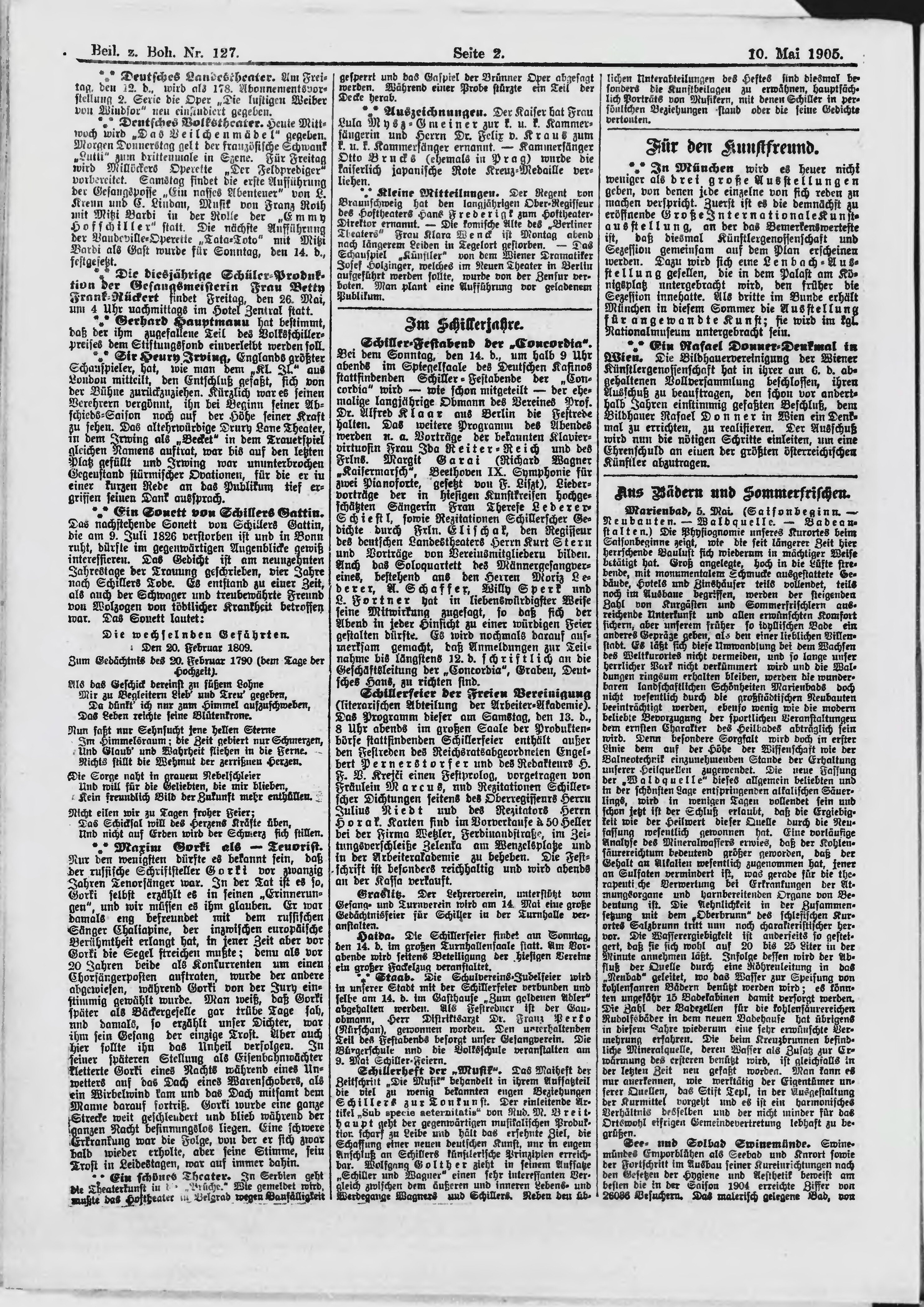 * Datum vydání výtisku: 10.5.1905 Číslo výtisku: 127 Typ výtisku: příloha