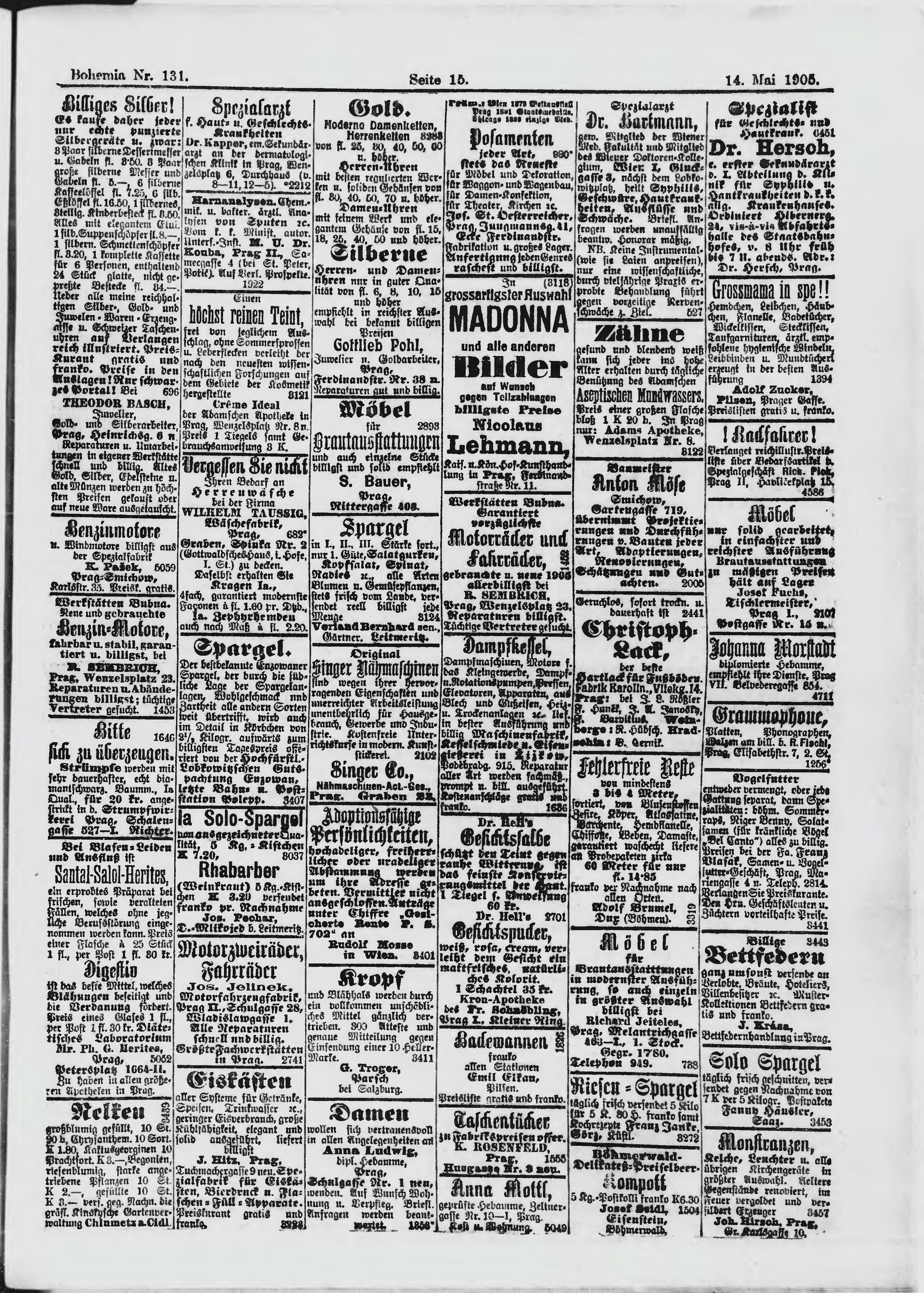 * Datum vydání výtisku: 14.5.1905 Číslo výtisku: 131 Poznámky k výtisku: ranní vydání;
