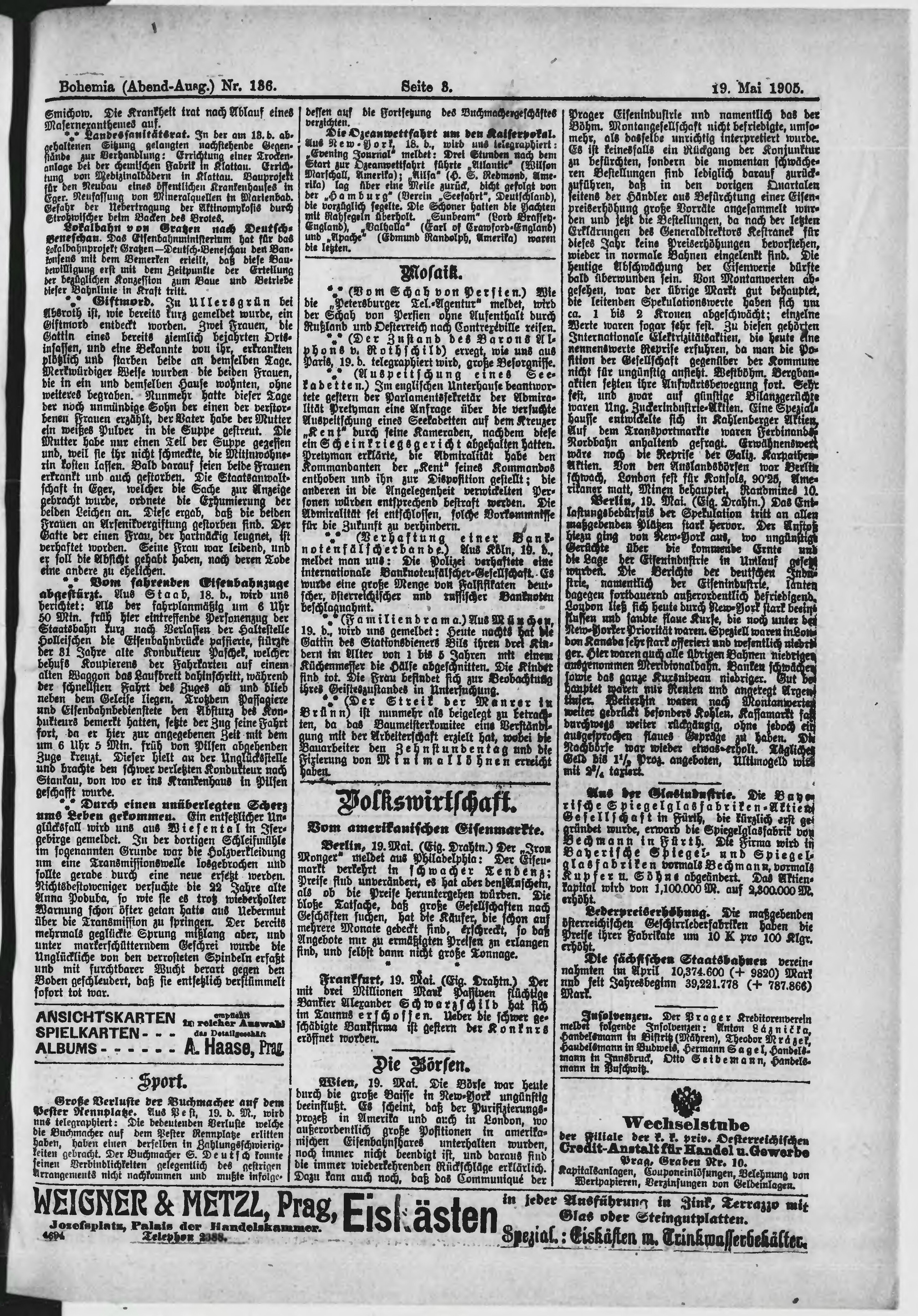 * Datum vydání výtisku: 19.5.1905 Číslo výtisku: 136 Poznámky k výtisku: večerní vydání;