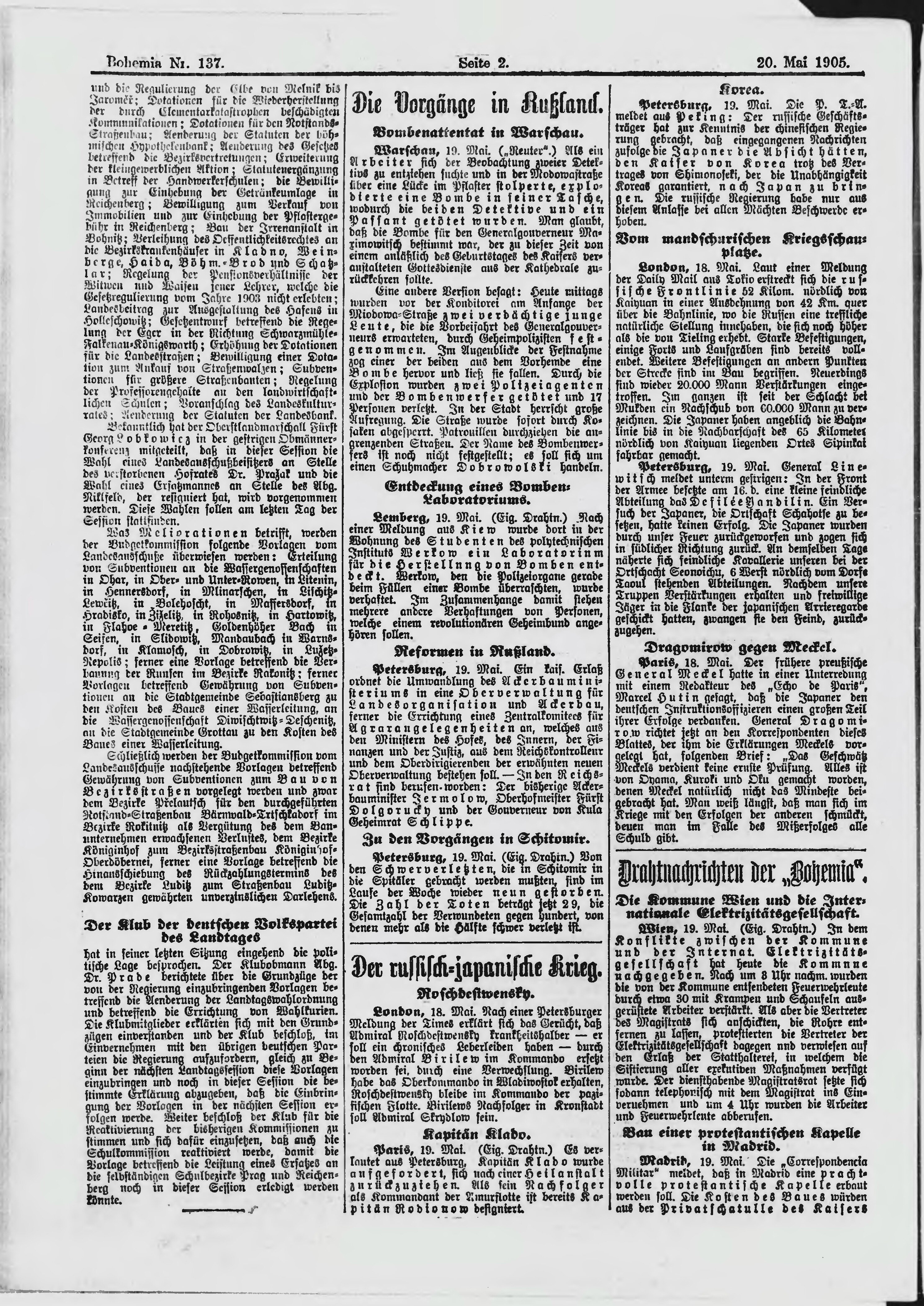 * Datum vydání výtisku: 20.5.1905 Číslo výtisku: 137 Poznámky k výtisku: ranní vydání;