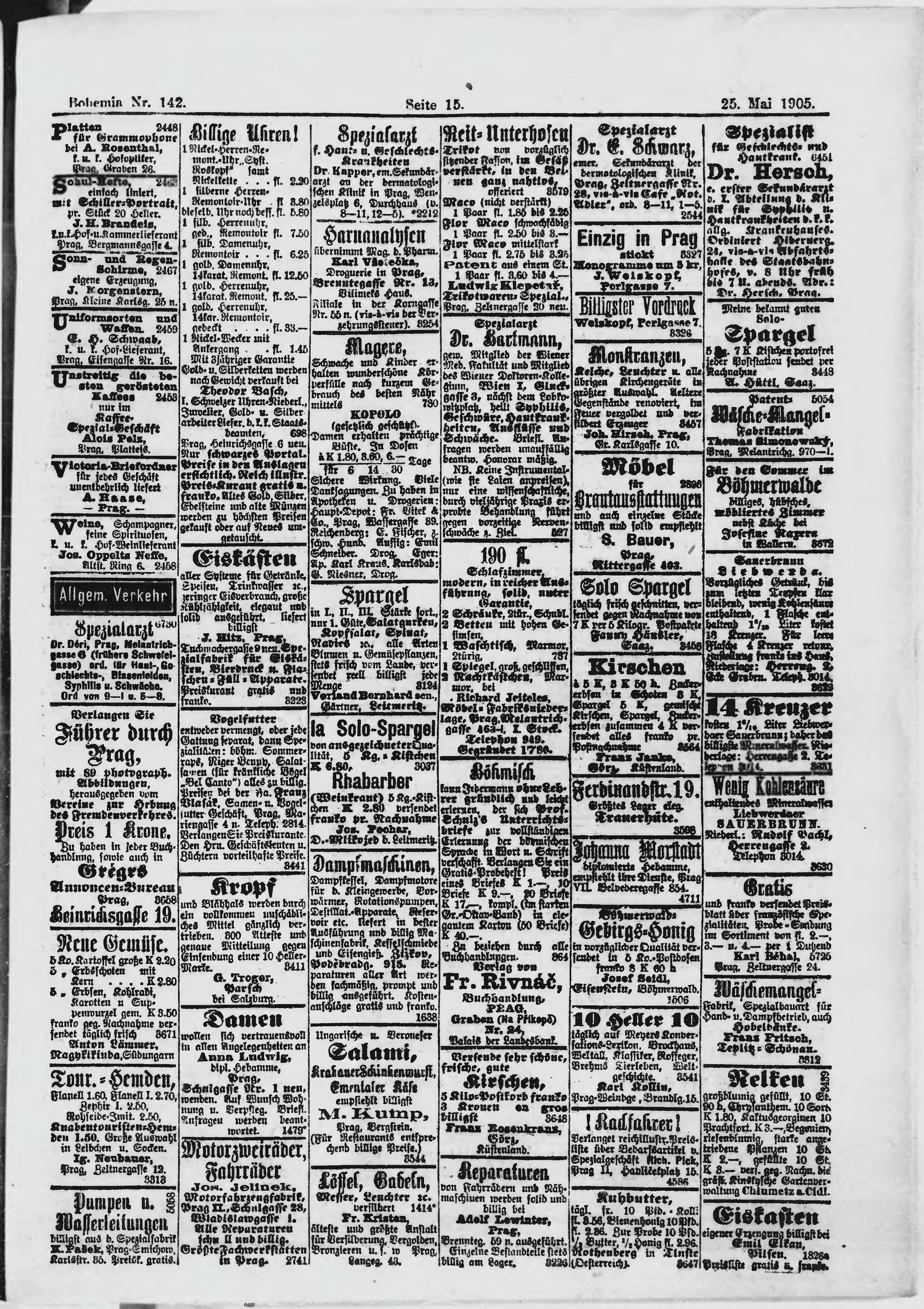 * Datum vydání výtisku: 25.5.1905 Číslo výtisku: 142 Poznámky k výtisku: ranní vydání;