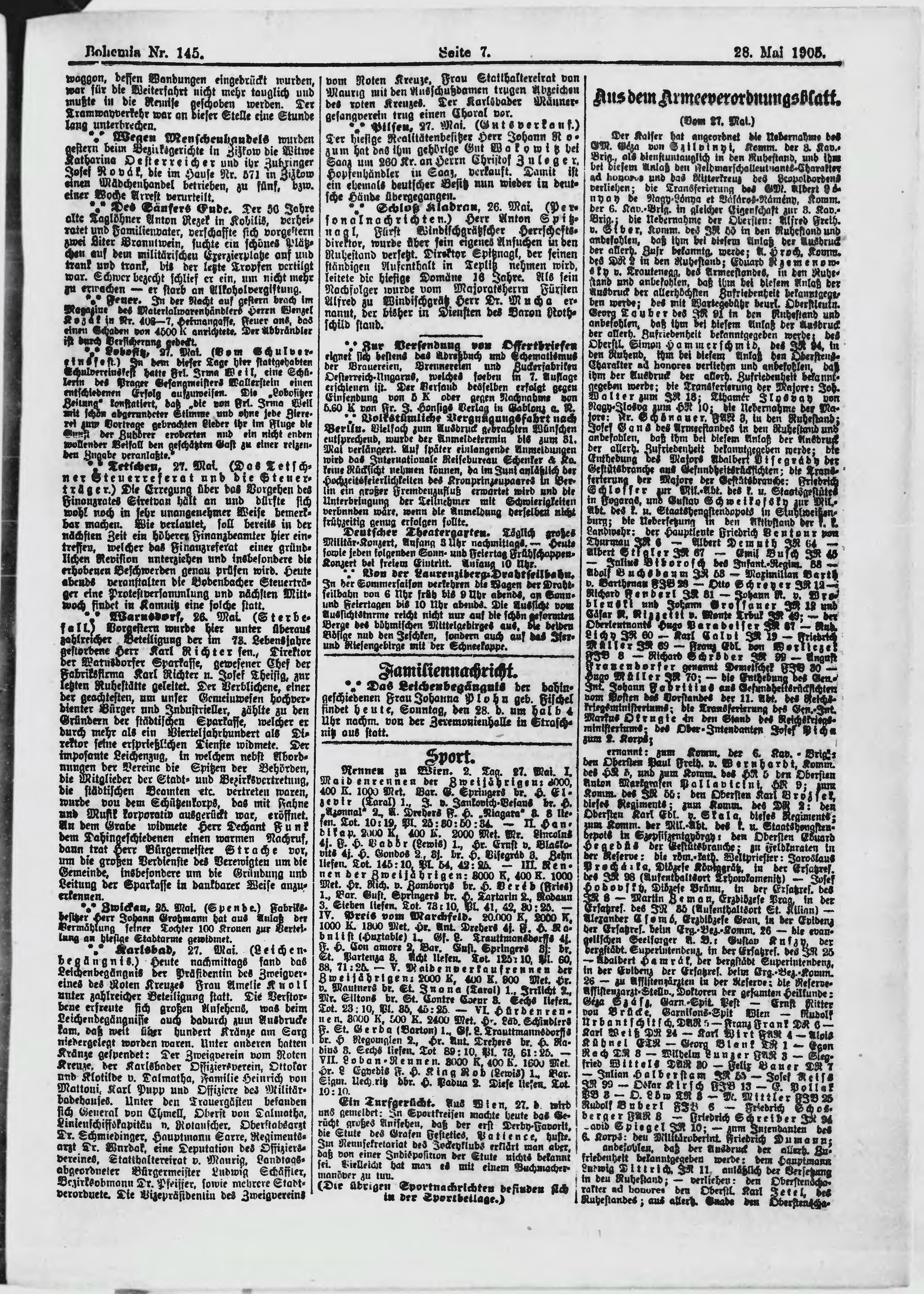 * Datum vydání výtisku: 28.5.1905 Číslo výtisku: 145 Poznámky k výtisku: ranní vydání;