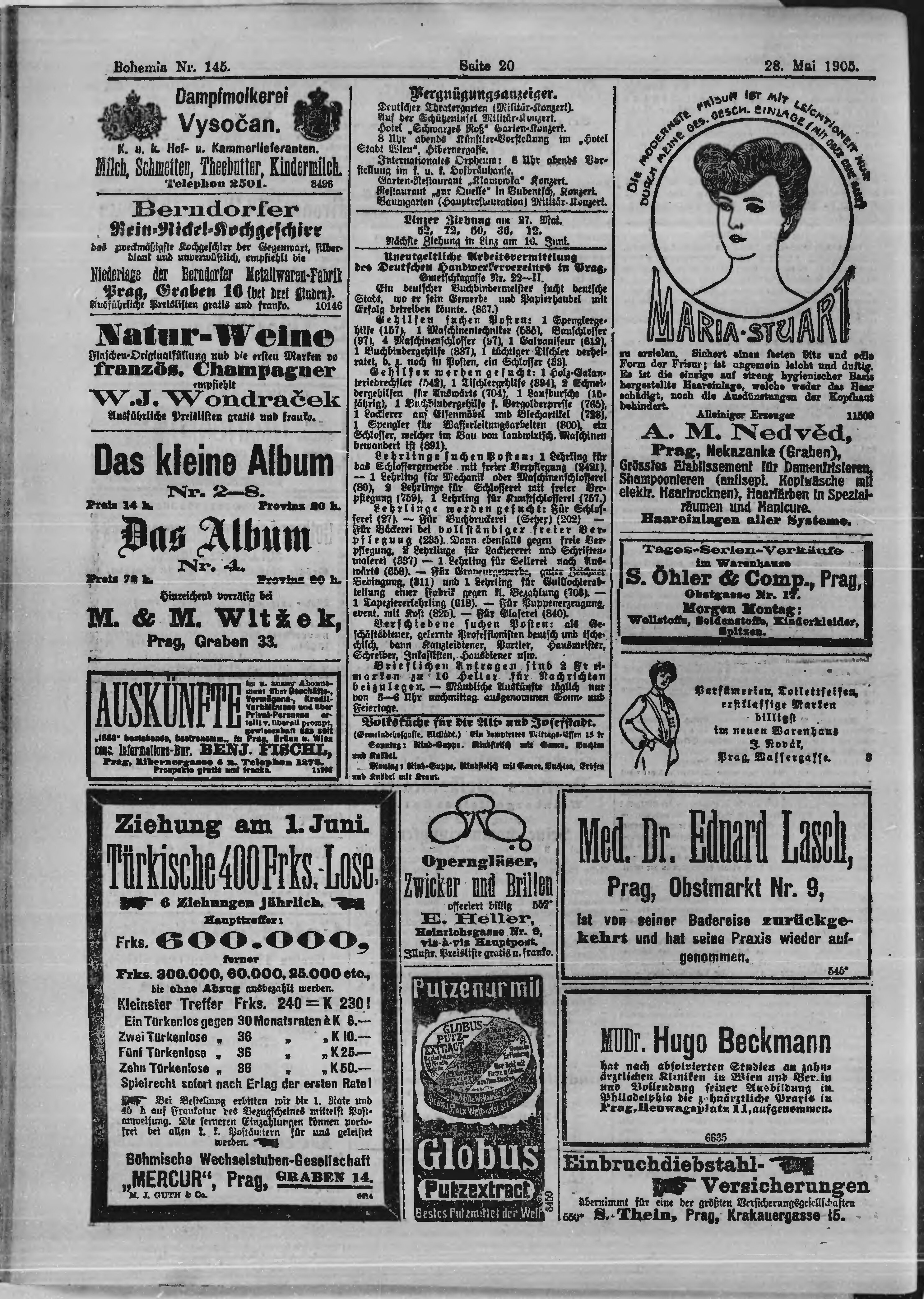 * Datum vydání výtisku: 28.5.1905 Číslo výtisku: 145 Poznámky k výtisku: ranní vydání;