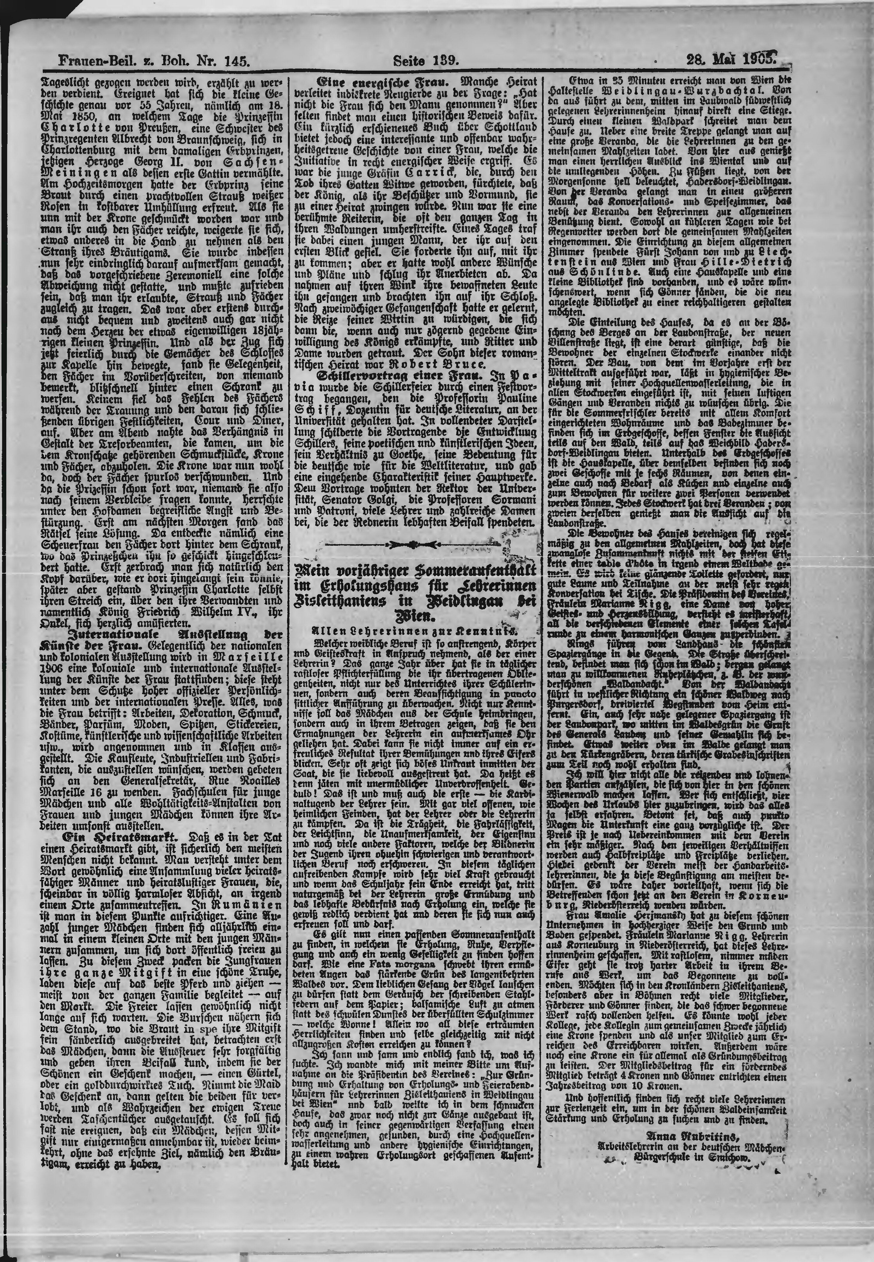 * Datum vydání výtisku: 28.5.1905 Číslo výtisku: 145 Typ výtisku: příloha