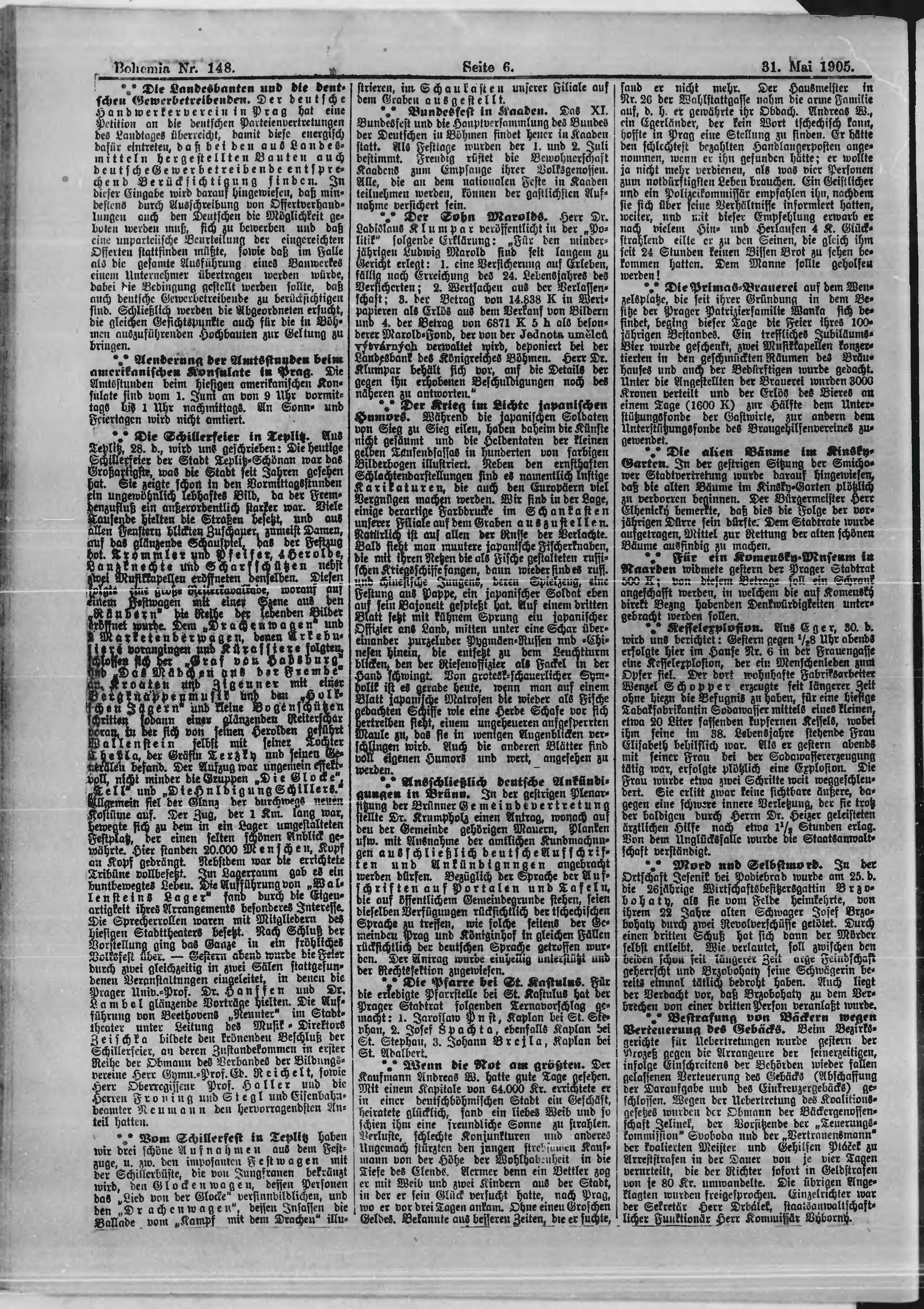 * Datum vydání výtisku: 31.5.1905 Číslo výtisku: 148 Poznámky k výtisku: ranní vydání;