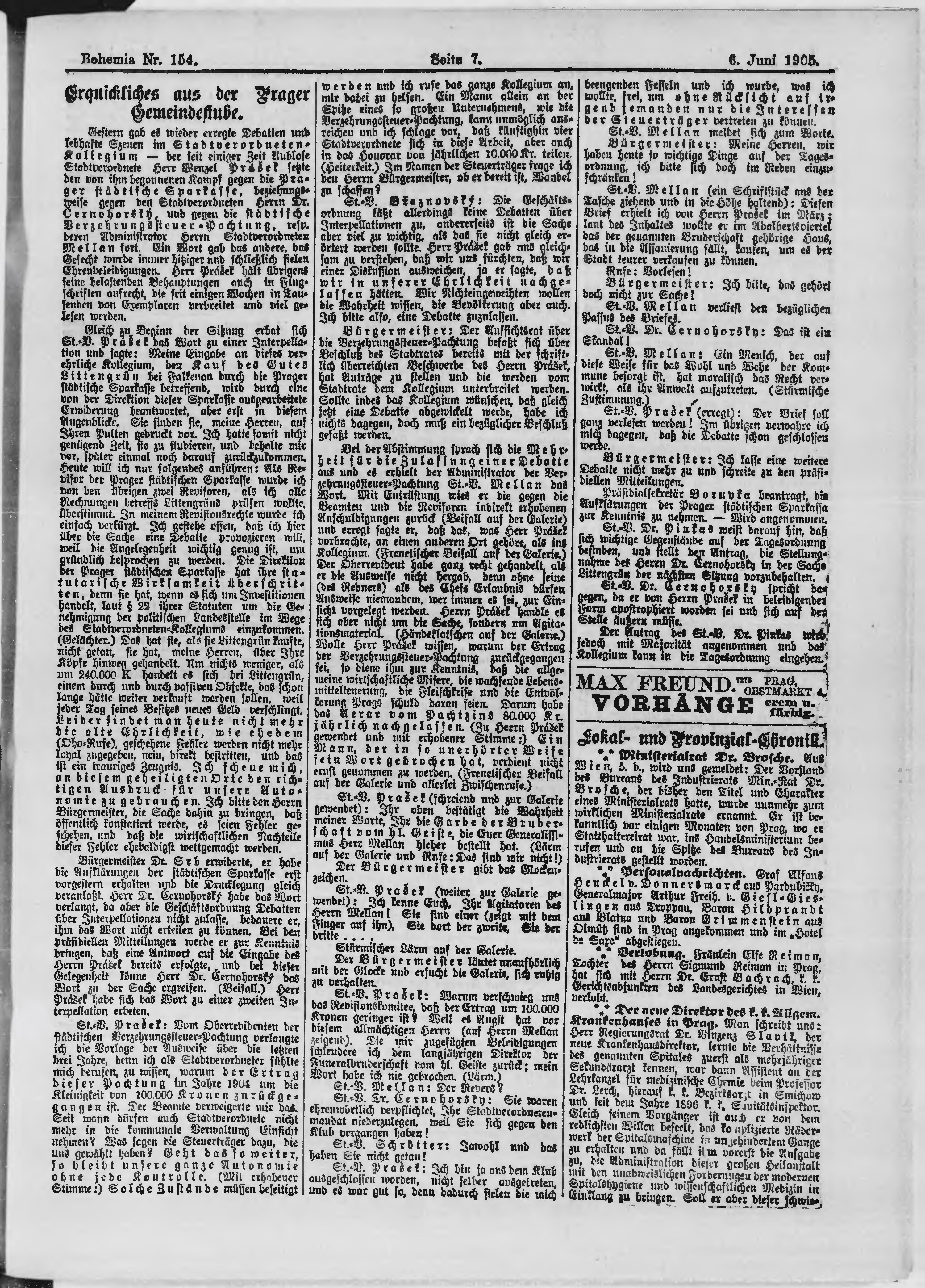 * Datum vydání výtisku: 6.6.1905 Číslo výtisku: 154 Poznámky k výtisku: ranní vydání;