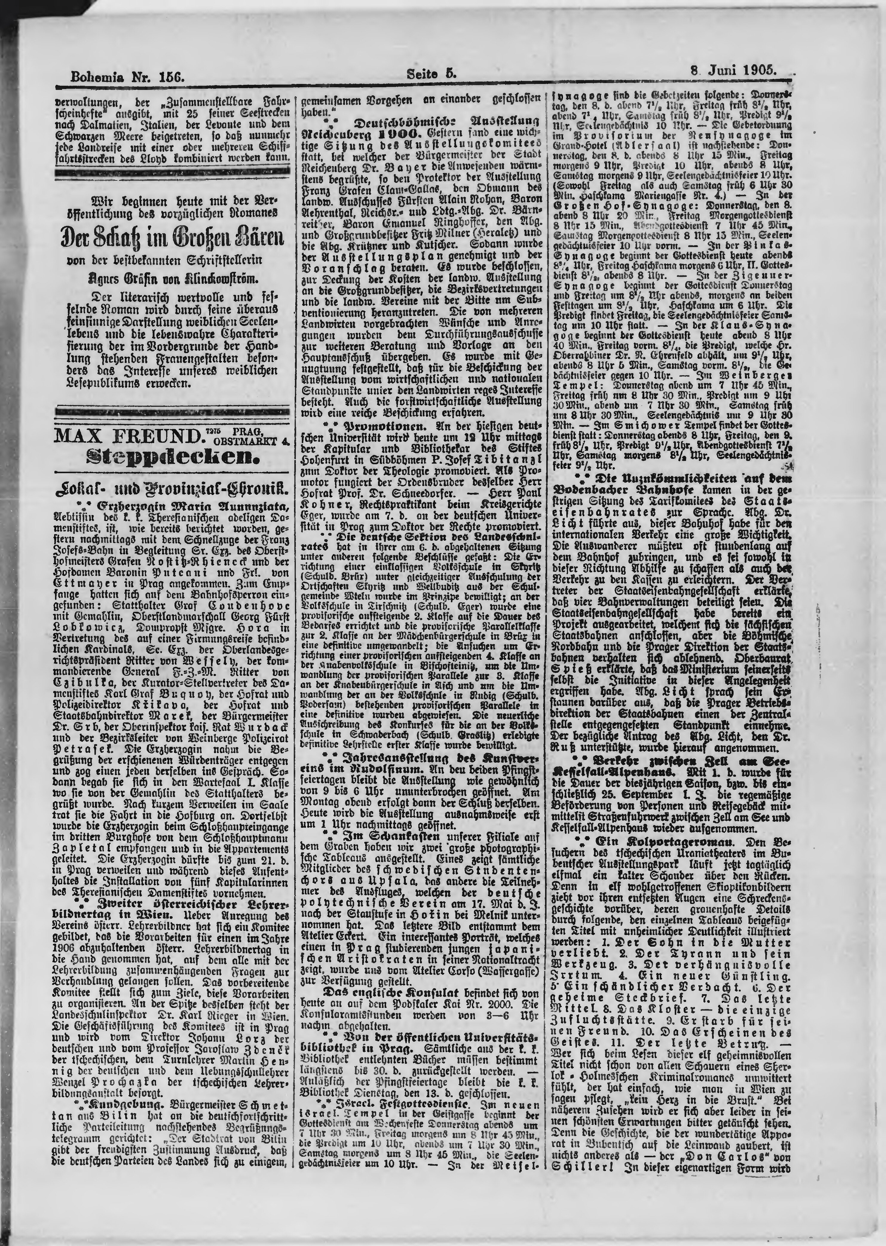 * Datum vydání výtisku: 8.6.1905 Číslo výtisku: 156 Poznámky k výtisku: ranní vydání;