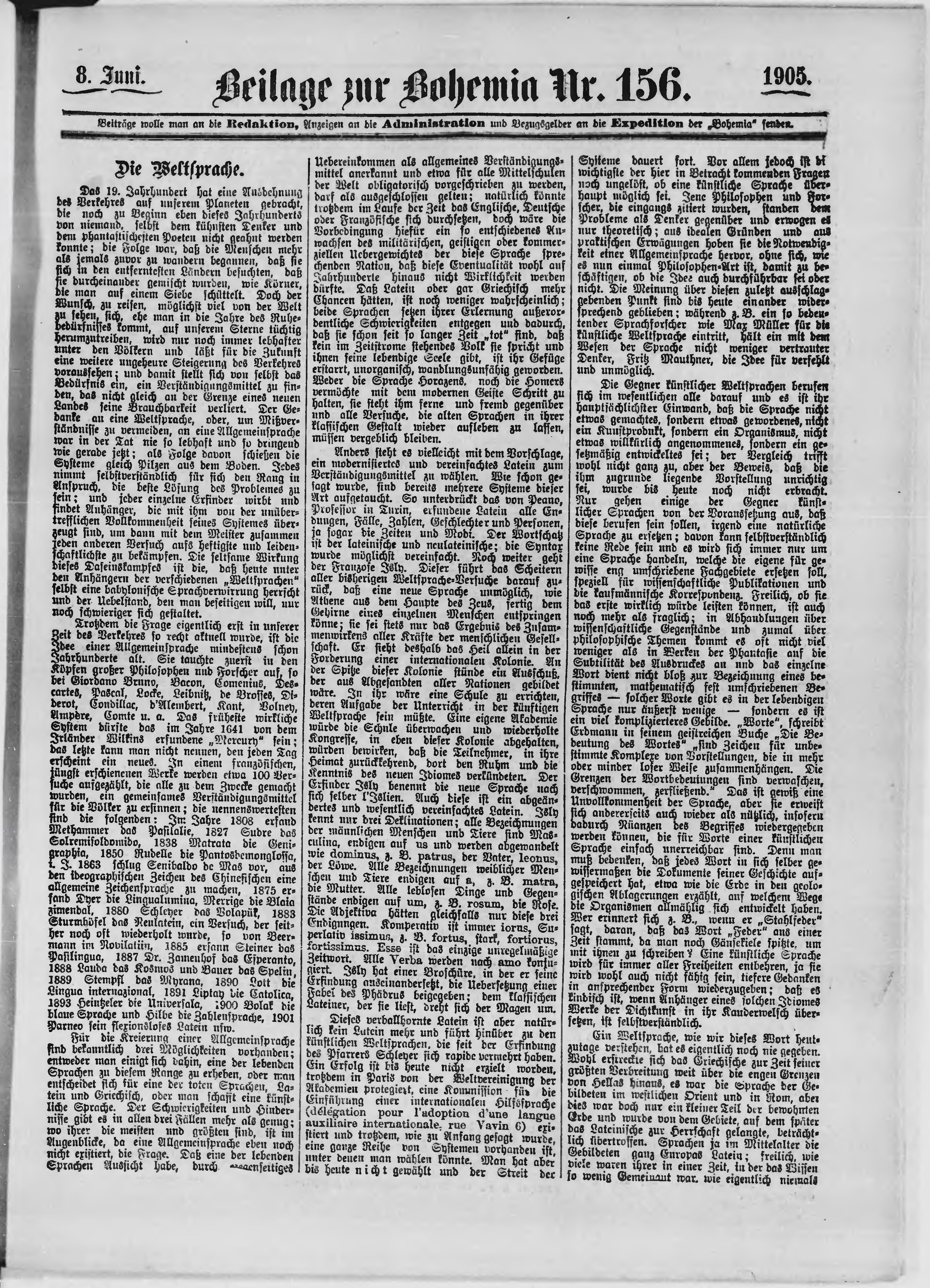 * Datum vydání výtisku: 8.6.1905 Číslo výtisku: 156 Typ výtisku: příloha
