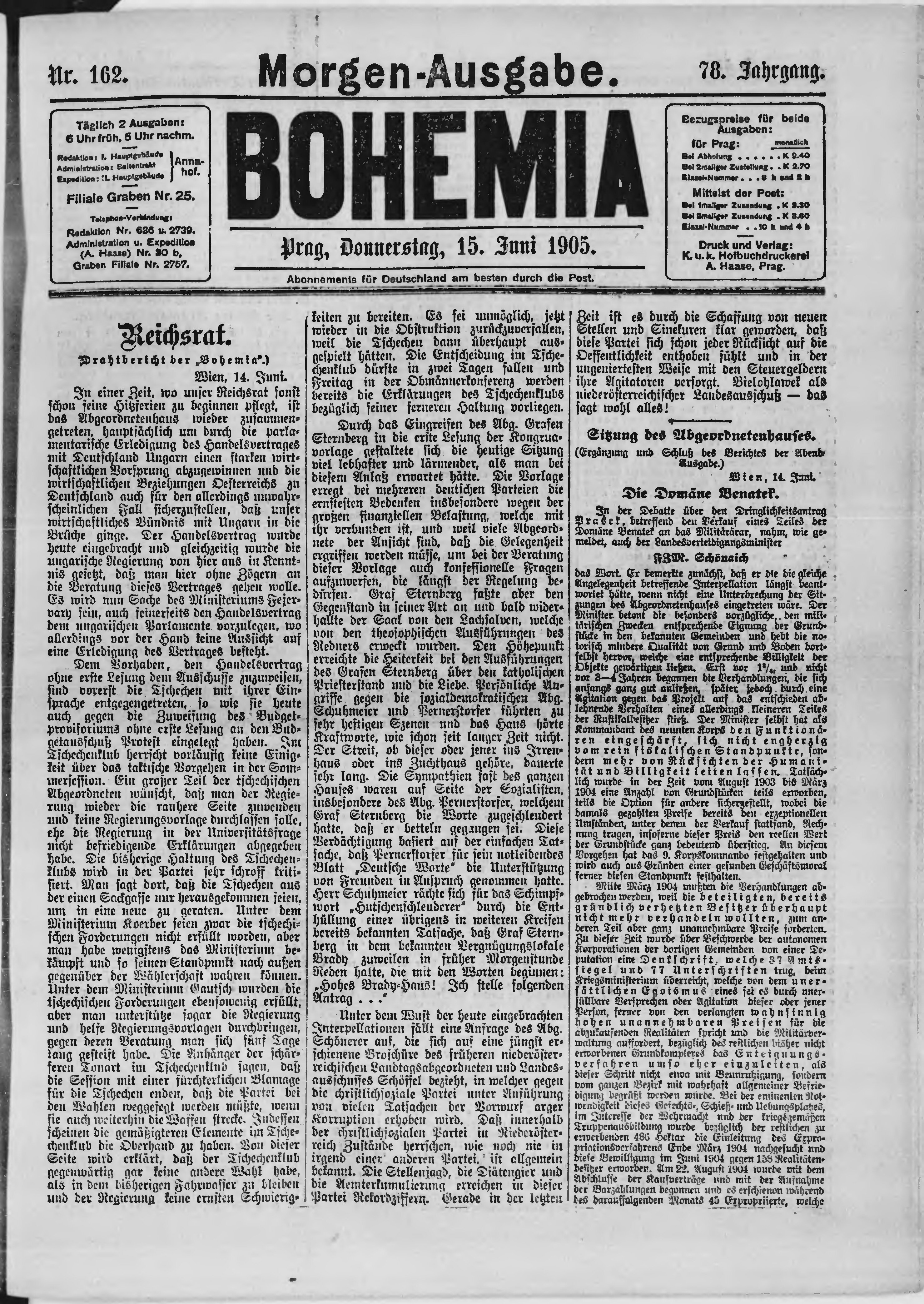 * Datum vydání výtisku: 15.6.1905 Číslo výtisku: 162 Poznámky k výtisku: ranní vydání;