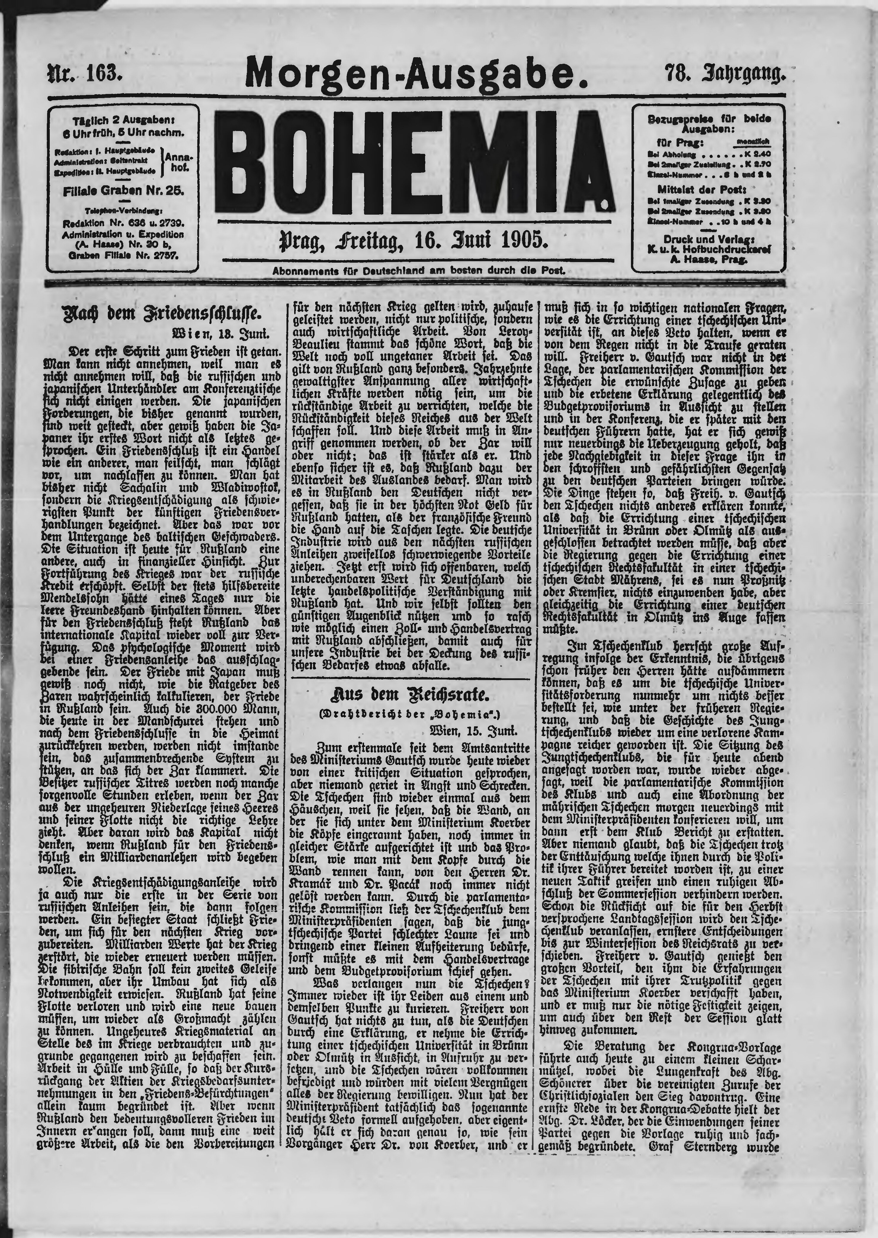 * Datum vydání výtisku: 16.6.1905 Číslo výtisku: 163 Poznámky k výtisku: ranní vydání;