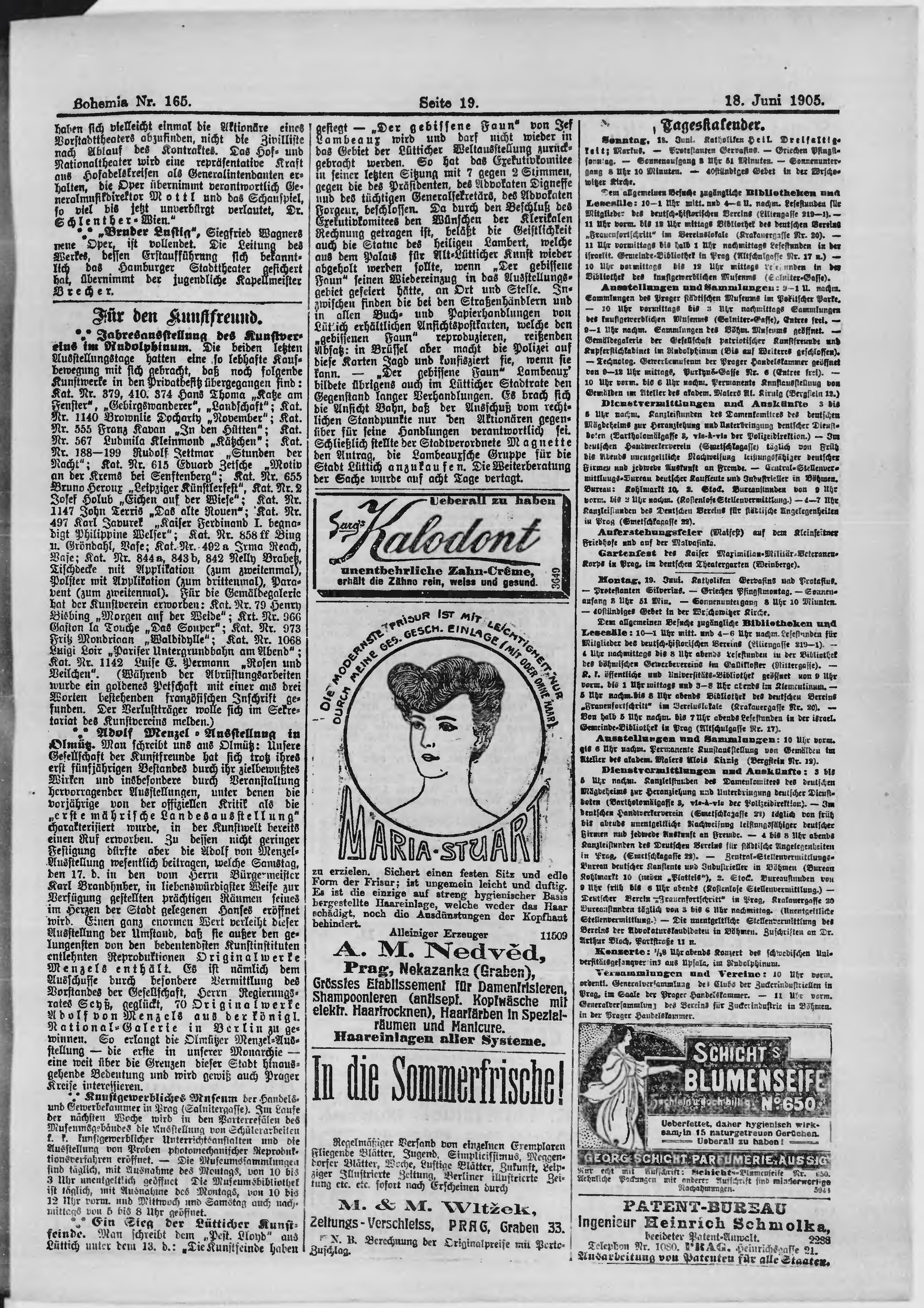 * Datum vydání výtisku: 18.6.1905 Číslo výtisku: 165 Poznámky k výtisku: ranní vydání;