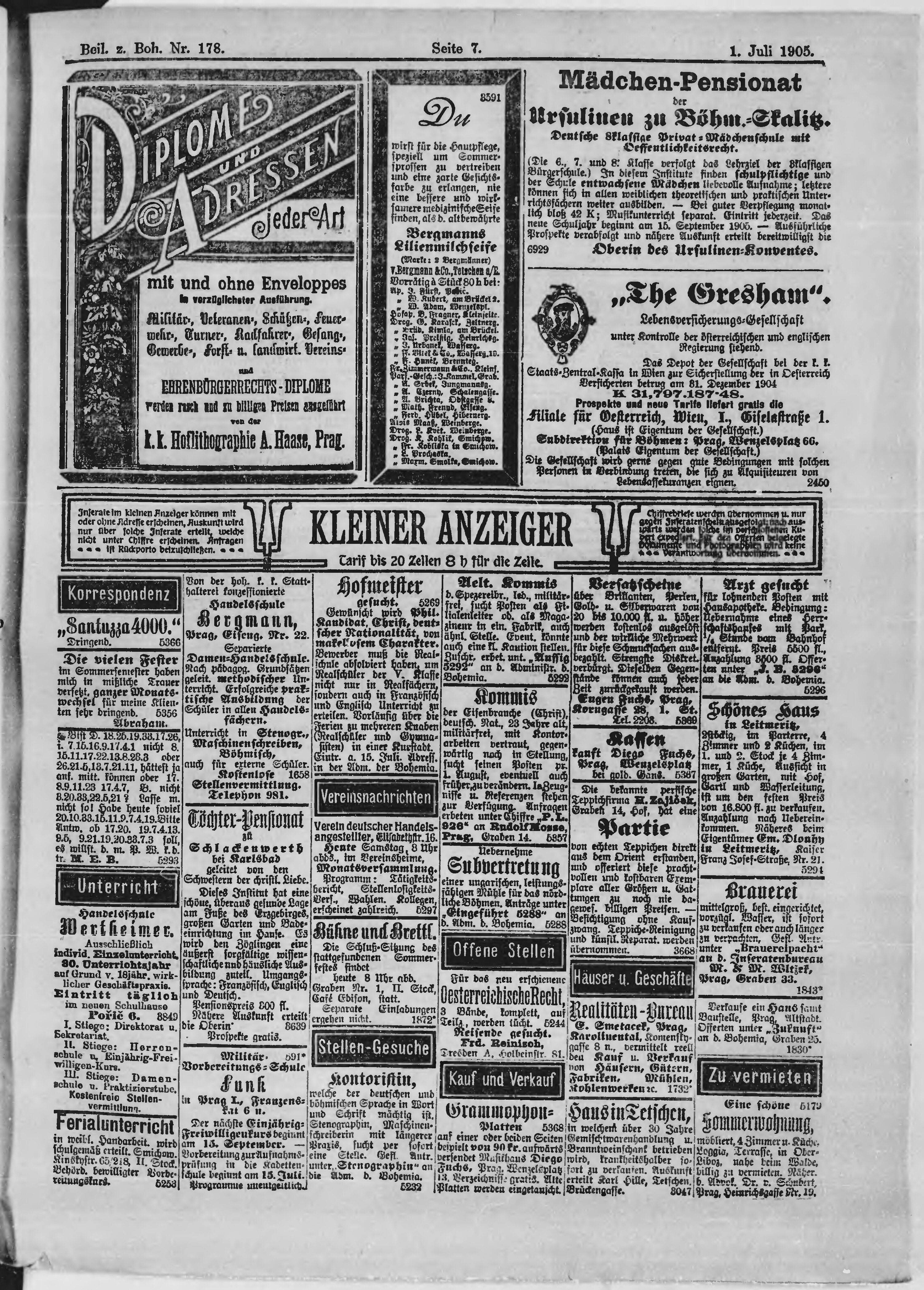* Datum vydání výtisku: 1.7.1905 Číslo výtisku: 178 Typ výtisku: příloha