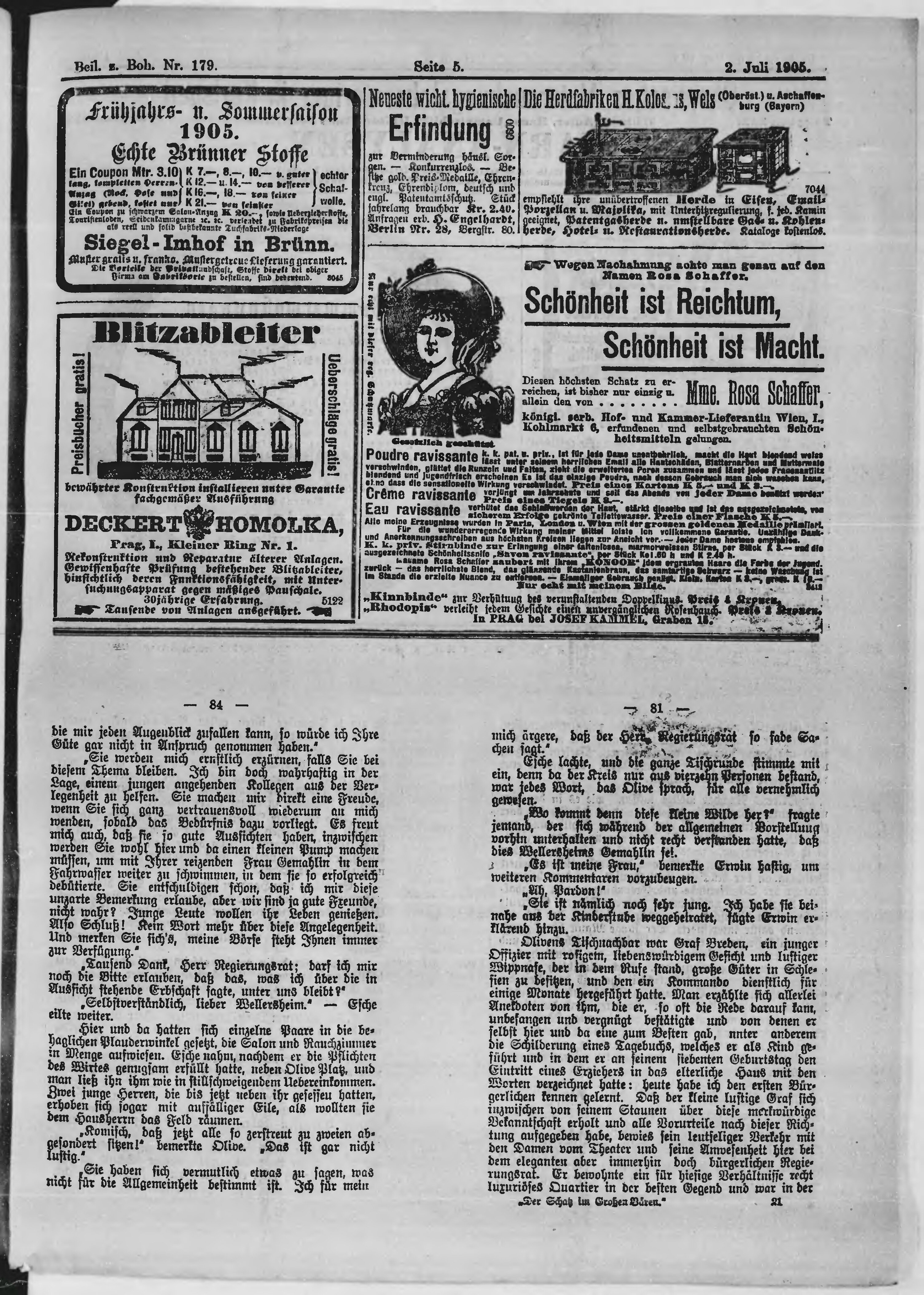 * Datum vydání výtisku: 2.7.1905 Číslo výtisku: 179 Typ výtisku: příloha