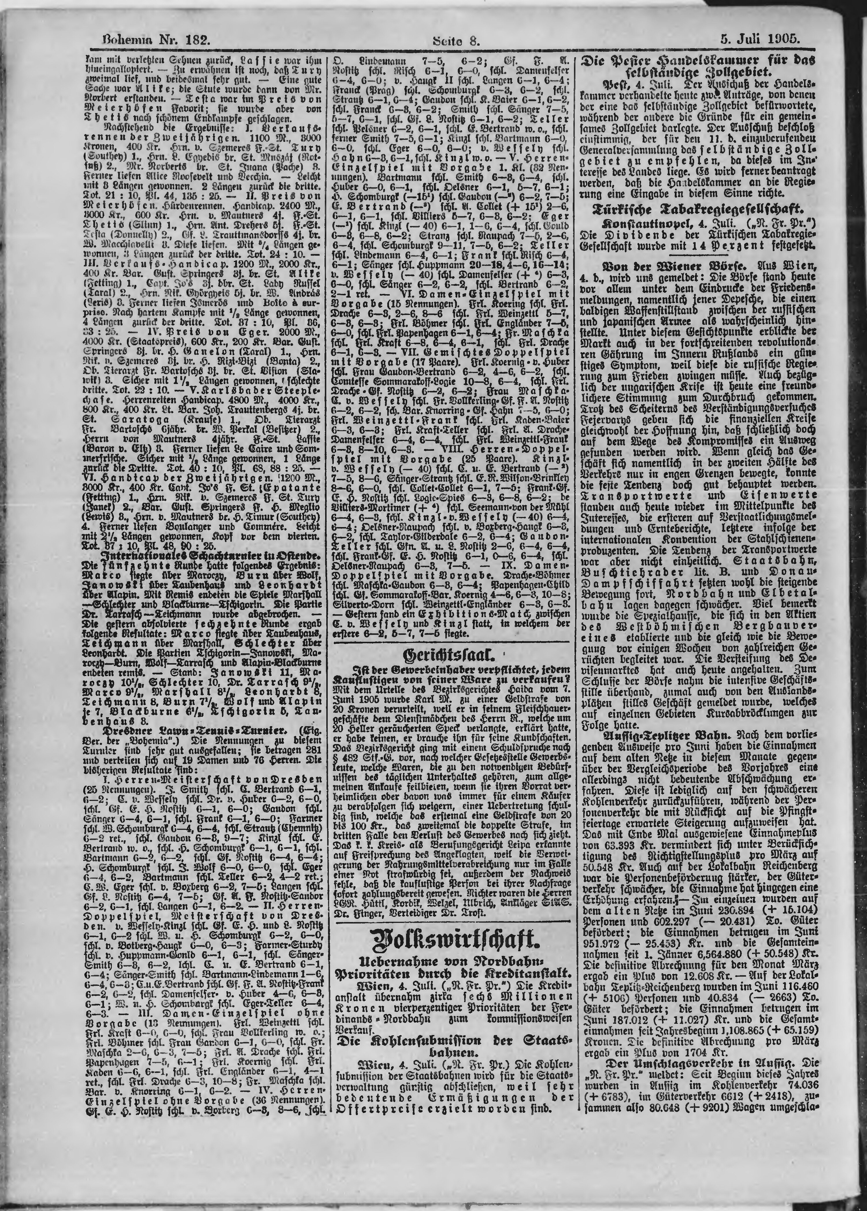 * Datum vydání výtisku: 5.7.1905 Číslo výtisku: 182 Poznámky k výtisku: ranní vydání;