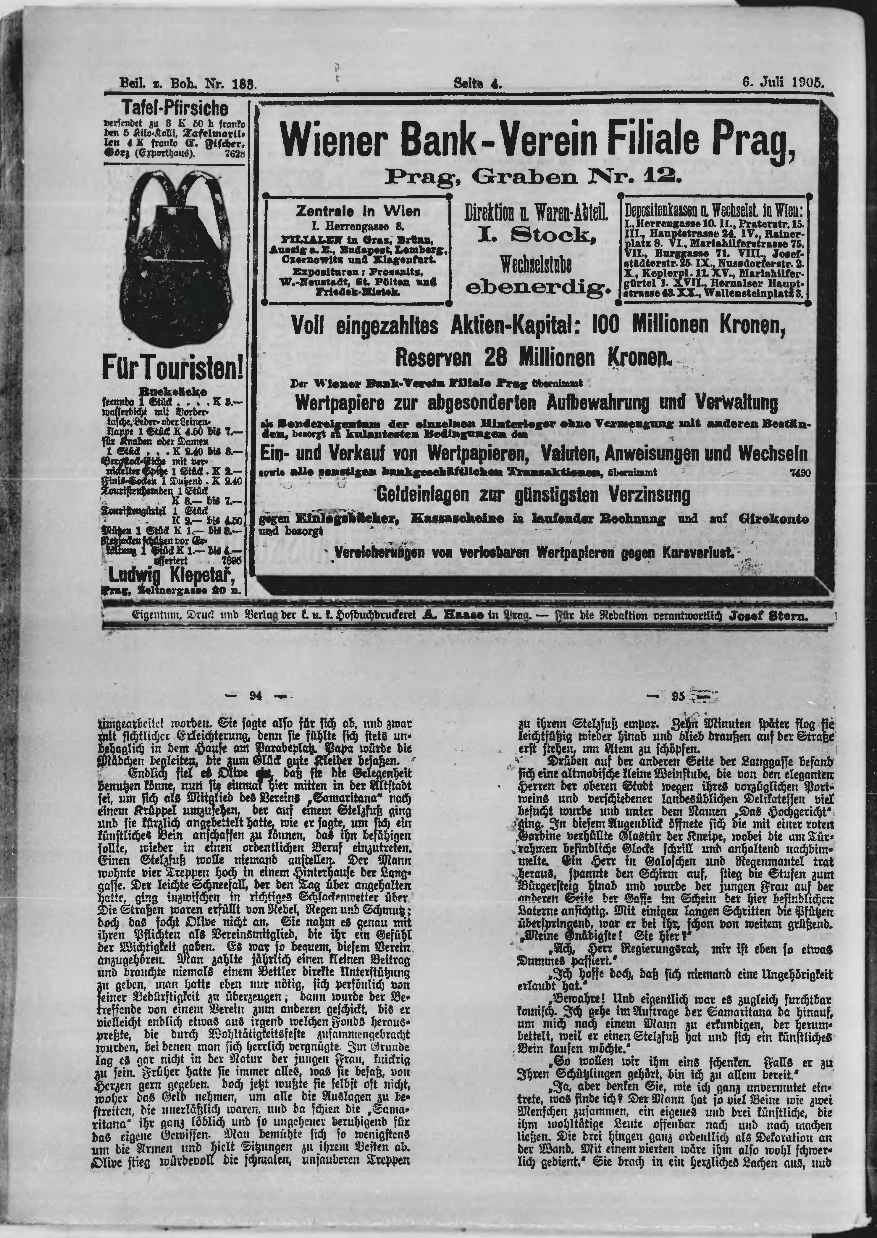 * Datum vydání výtisku: 6.7.1905 Číslo výtisku: 183 Typ výtisku: příloha