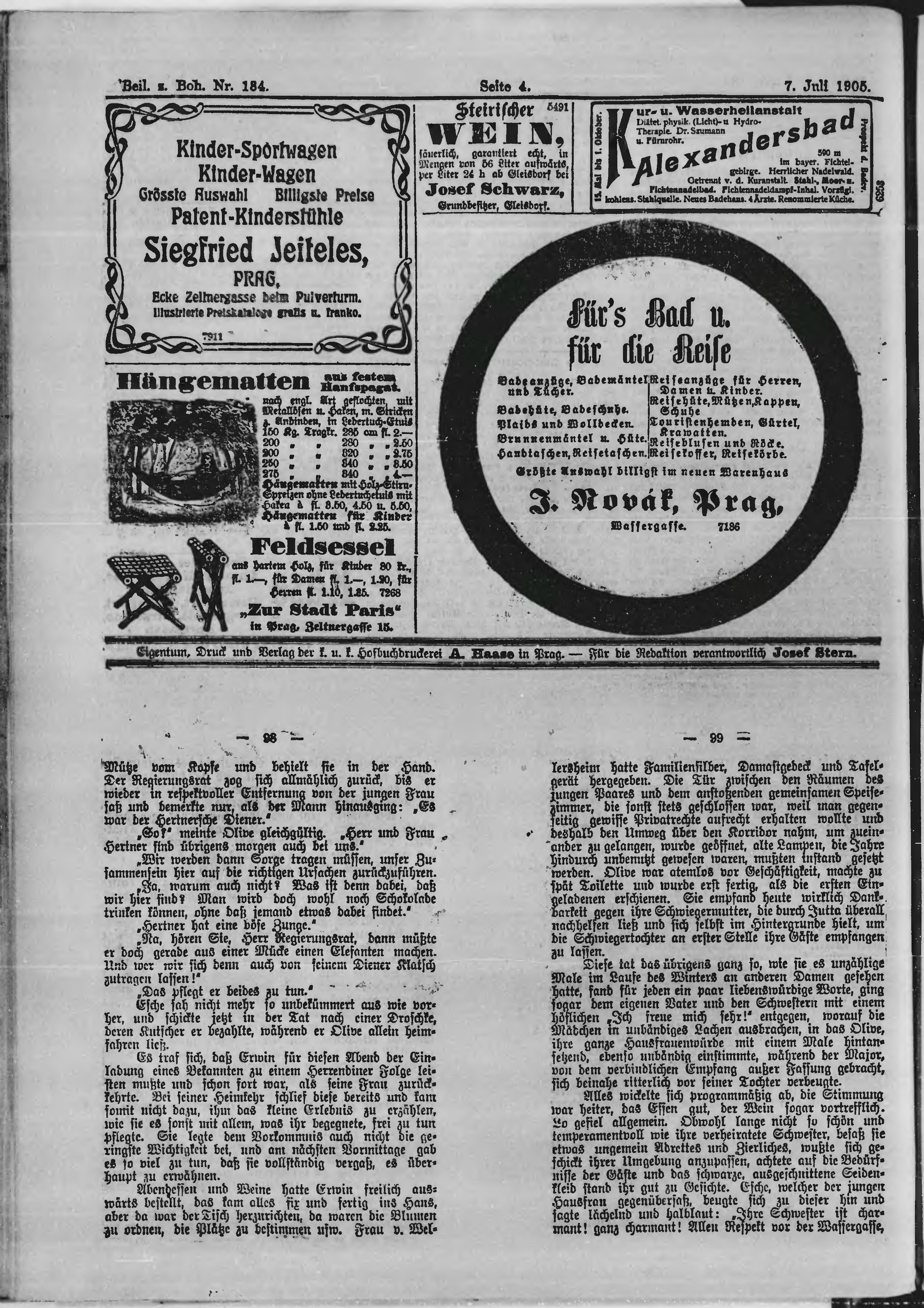 * Datum vydání výtisku: 7.7.1905 Číslo výtisku: 184 Typ výtisku: příloha