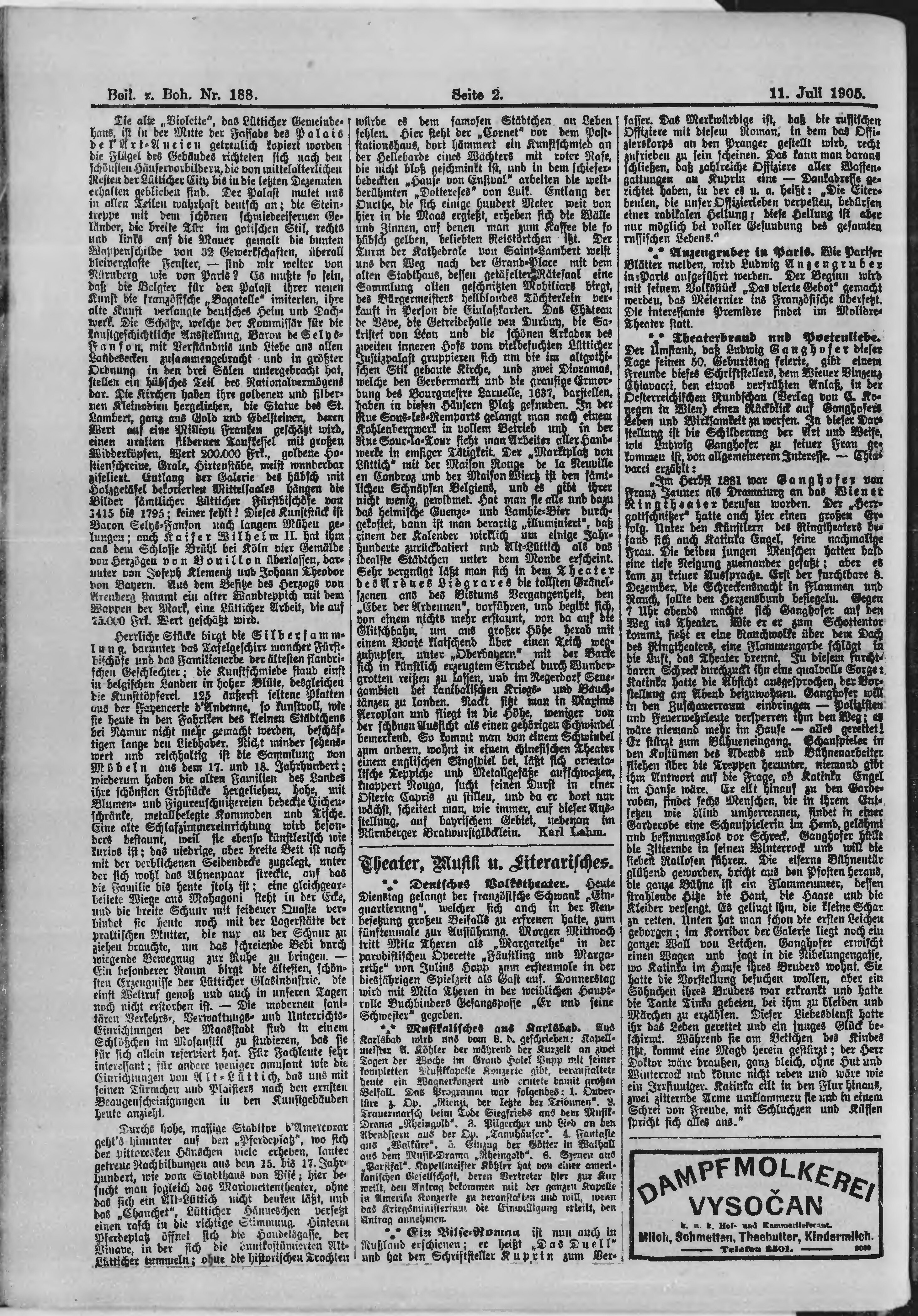 * Datum vydání výtisku: 11.7.1905 Číslo výtisku: 188 Typ výtisku: příloha