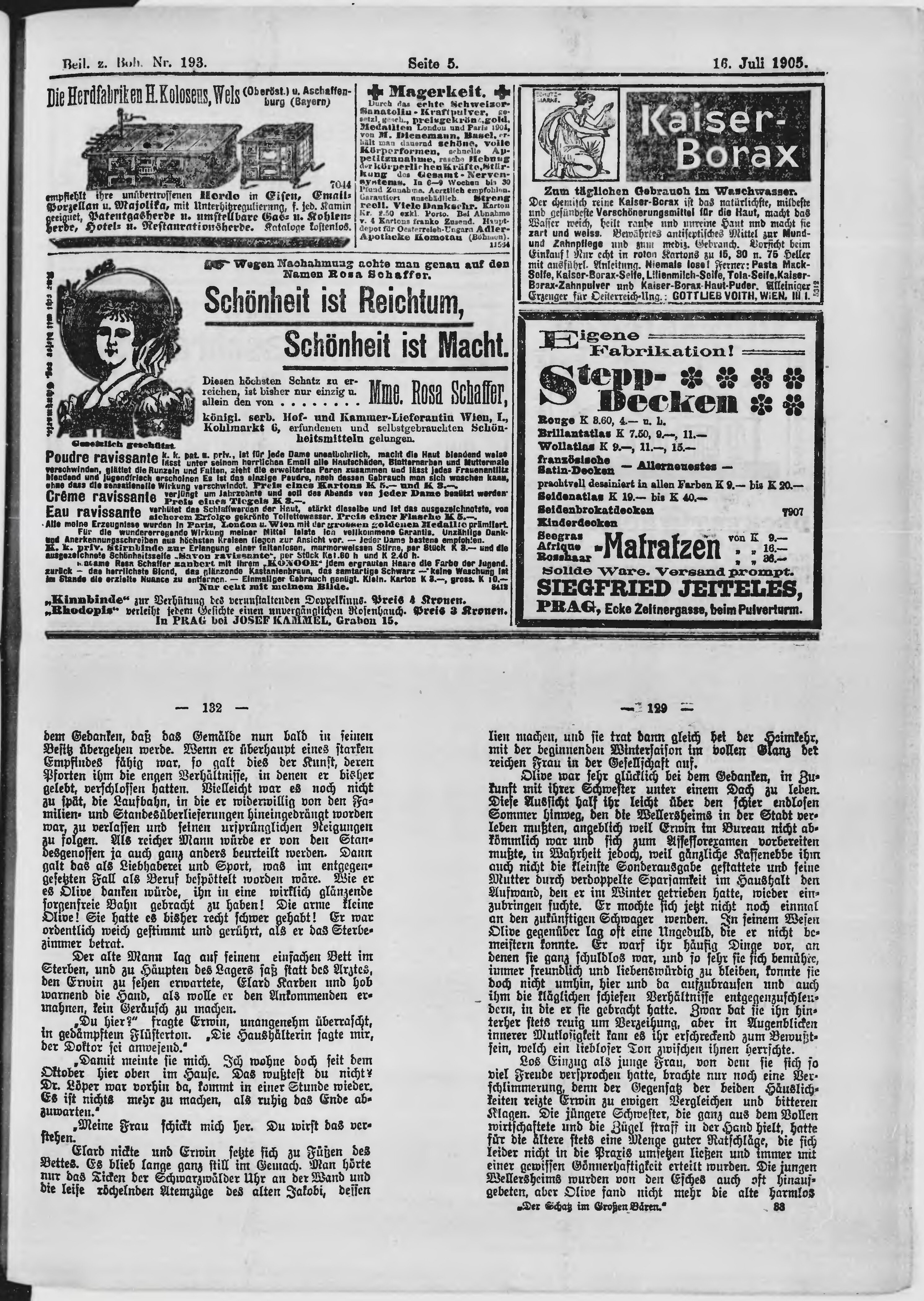 * Datum vydání výtisku: 16.7.1905 Číslo výtisku: 193 Typ výtisku: příloha