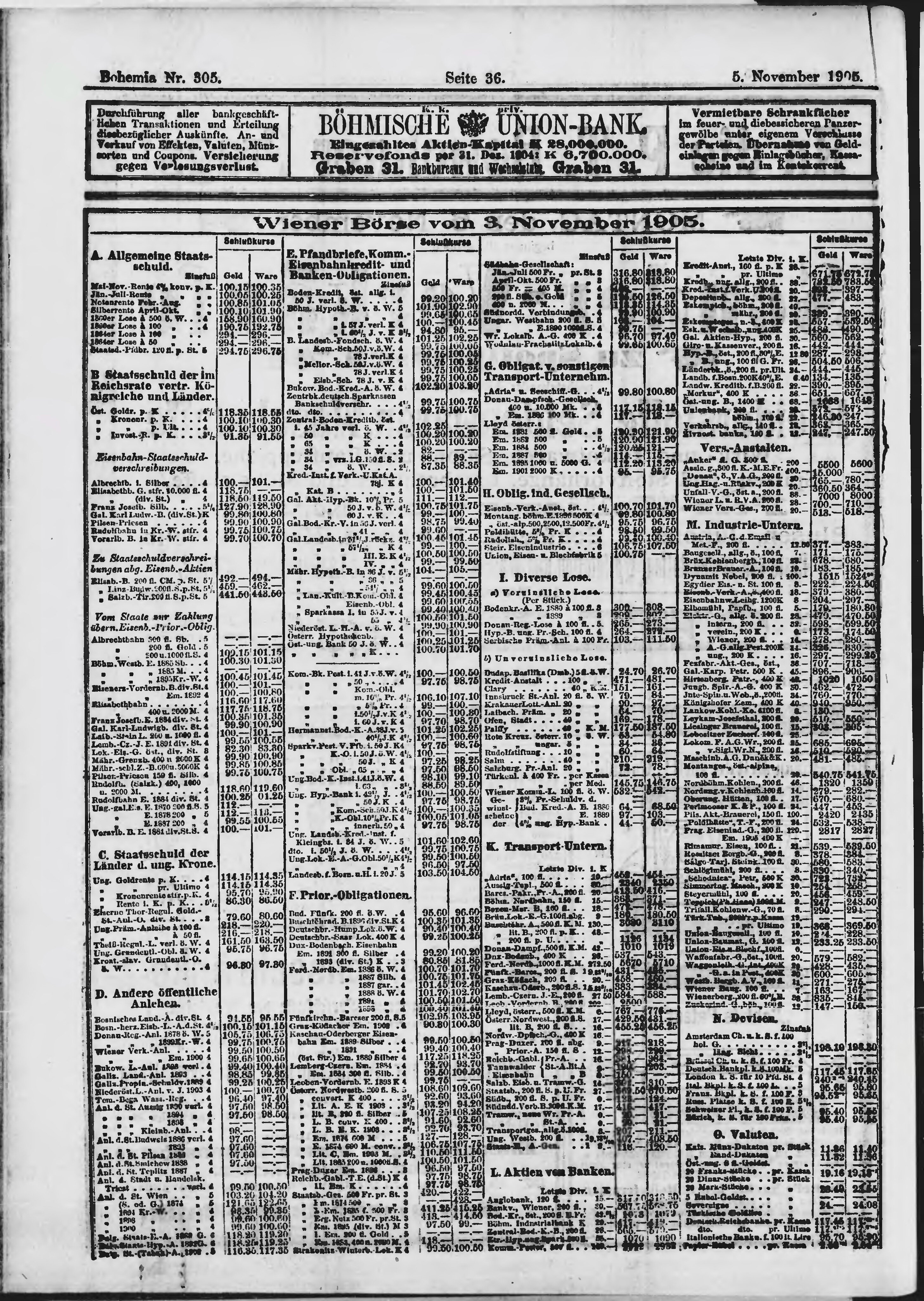 * Datum vydání výtisku: 5.11.1905 Číslo výtisku: 305 Poznámky k výtisku: večerní vydání není k dispozici