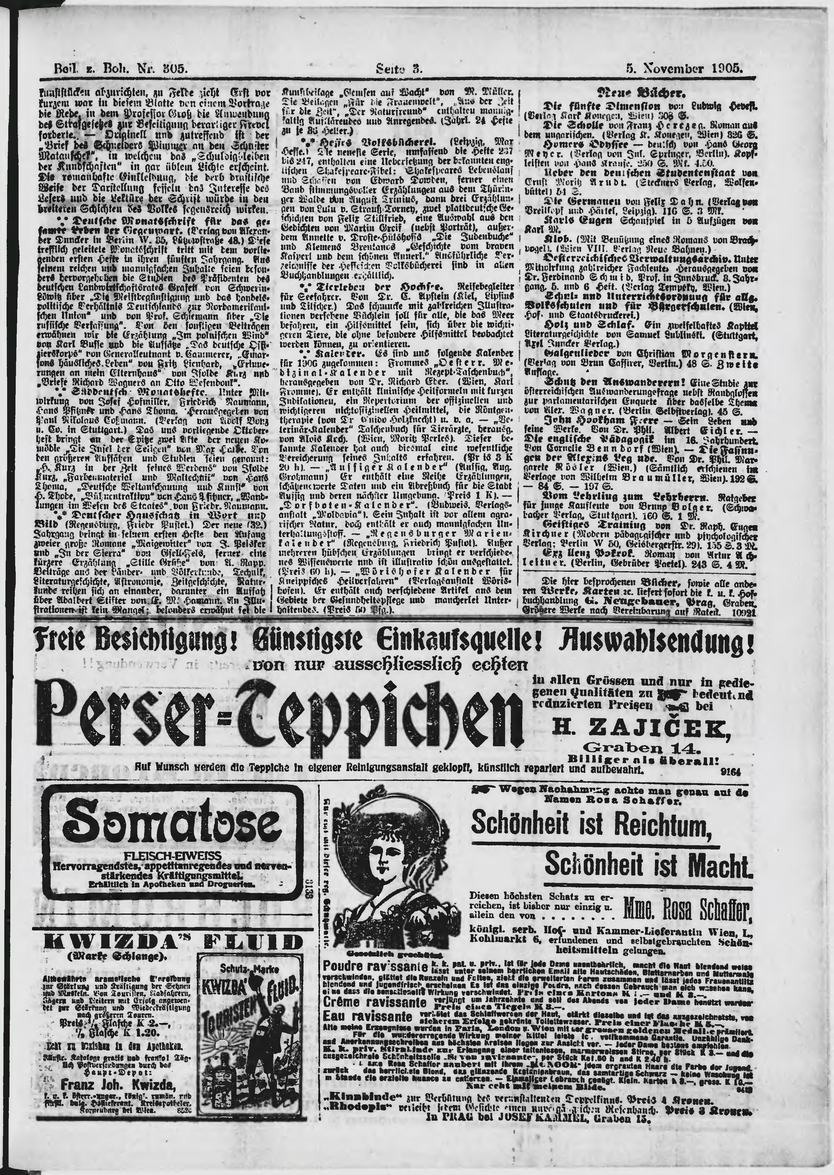 * Datum vydání výtisku: 5.11.1905 Číslo výtisku: 305 Typ výtisku: příloha