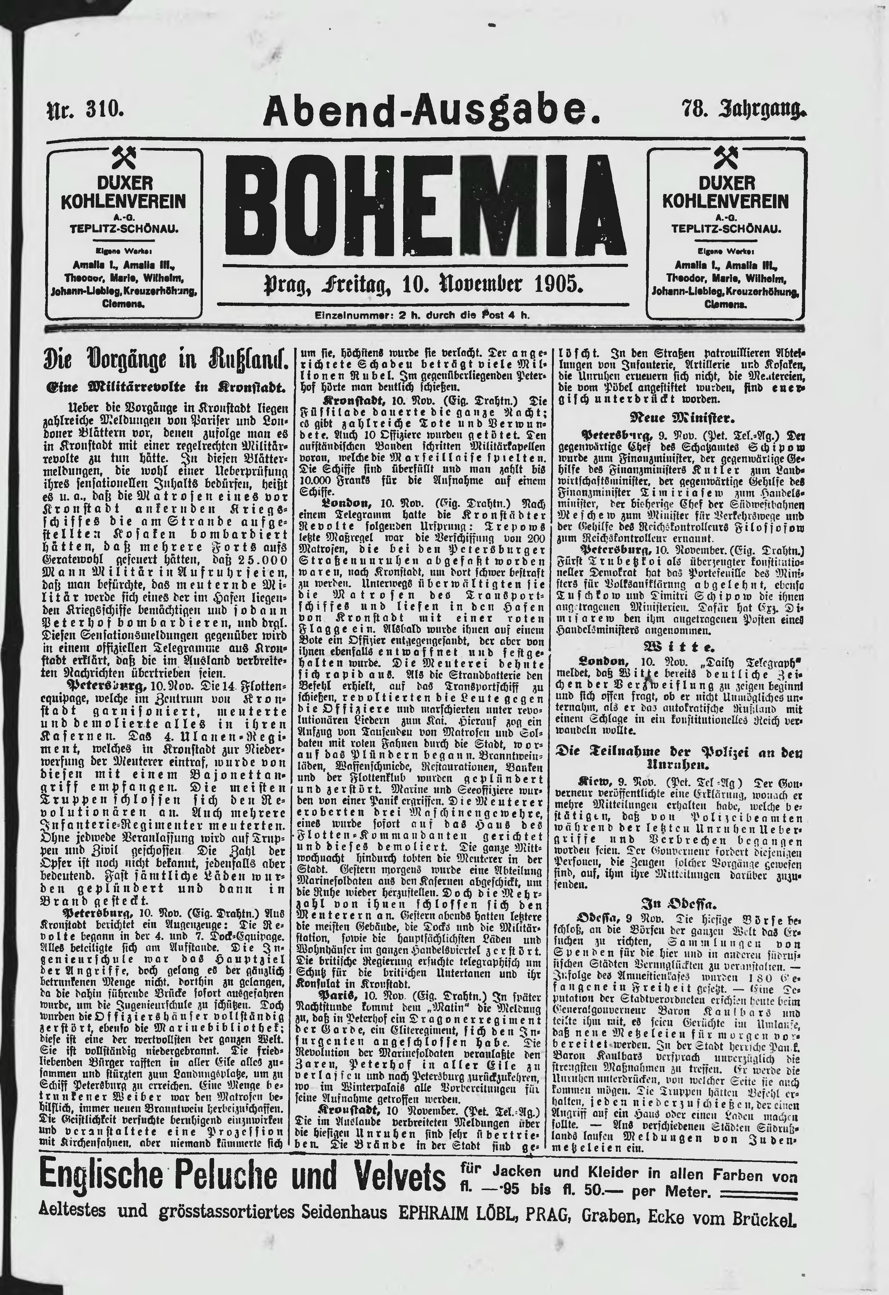 * Datum vydání výtisku: 10.11.1905 Číslo výtisku: 310 Poznámky k výtisku: večerní vydání;