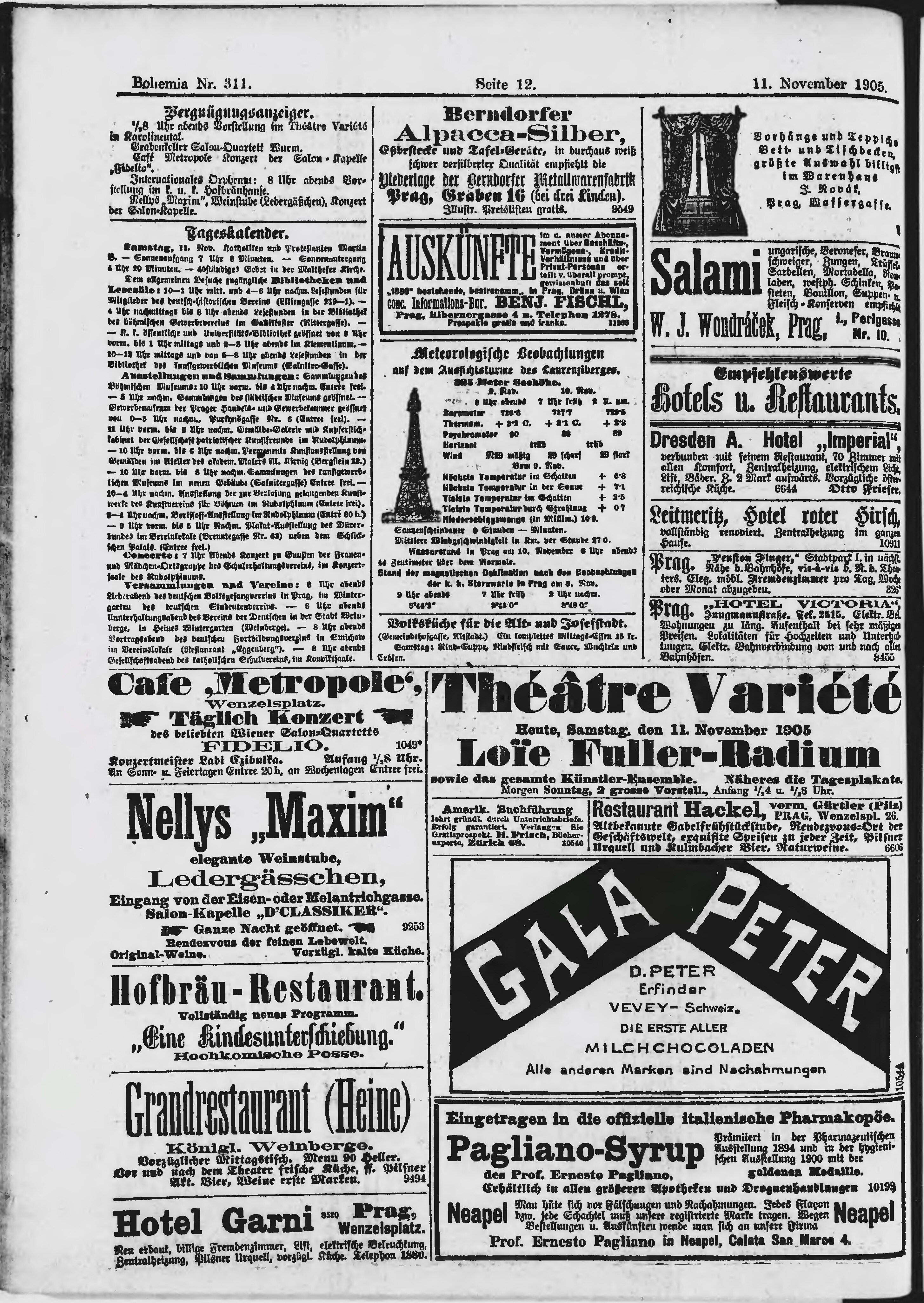 * Datum vydání výtisku: 11.11.1905 Číslo výtisku: 311 Poznámky k výtisku: ranní vydání;