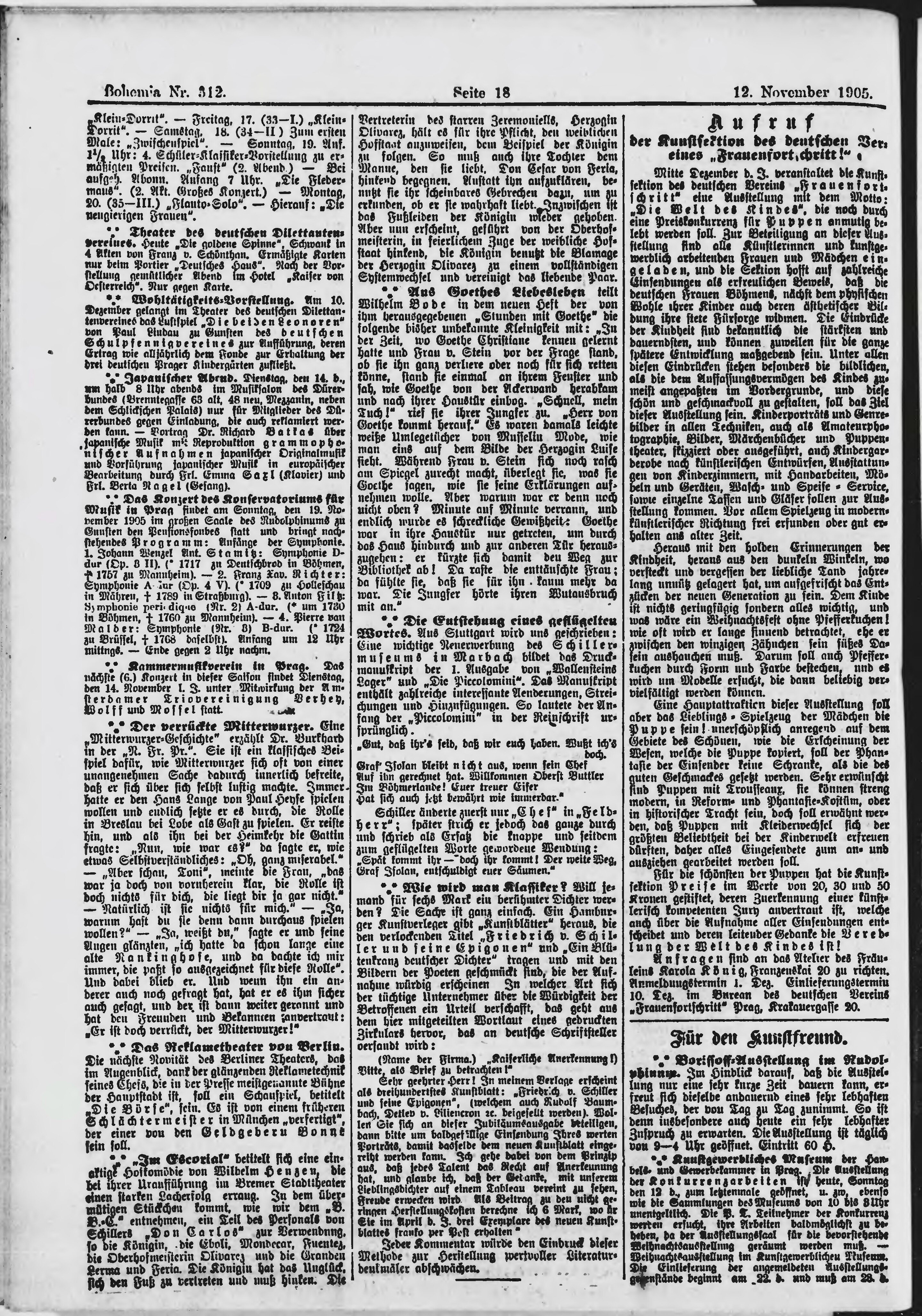 * Datum vydání výtisku: 12.11.1905 Číslo výtisku: 312 Poznámky k výtisku: ranní vydání;