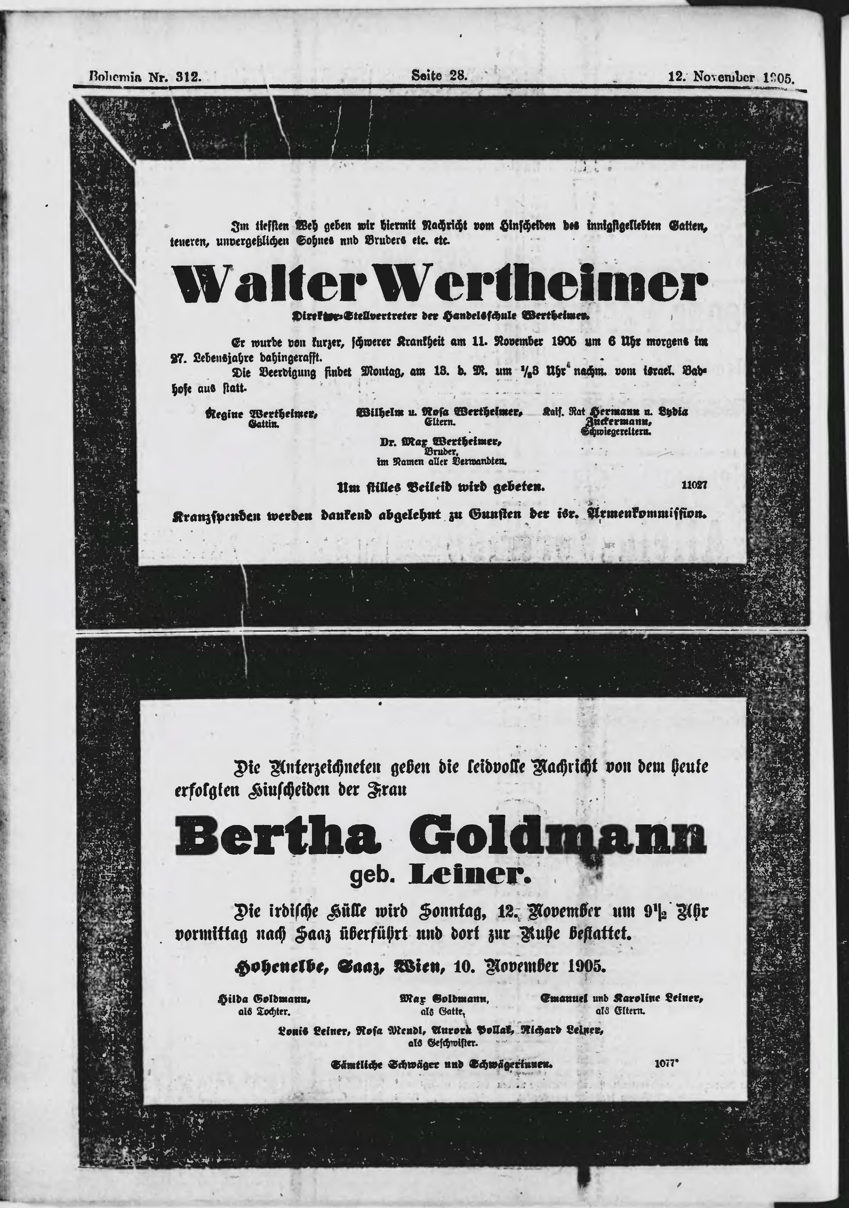* Datum vydání výtisku: 12.11.1905 Číslo výtisku: 312 Poznámky k výtisku: ranní vydání;
