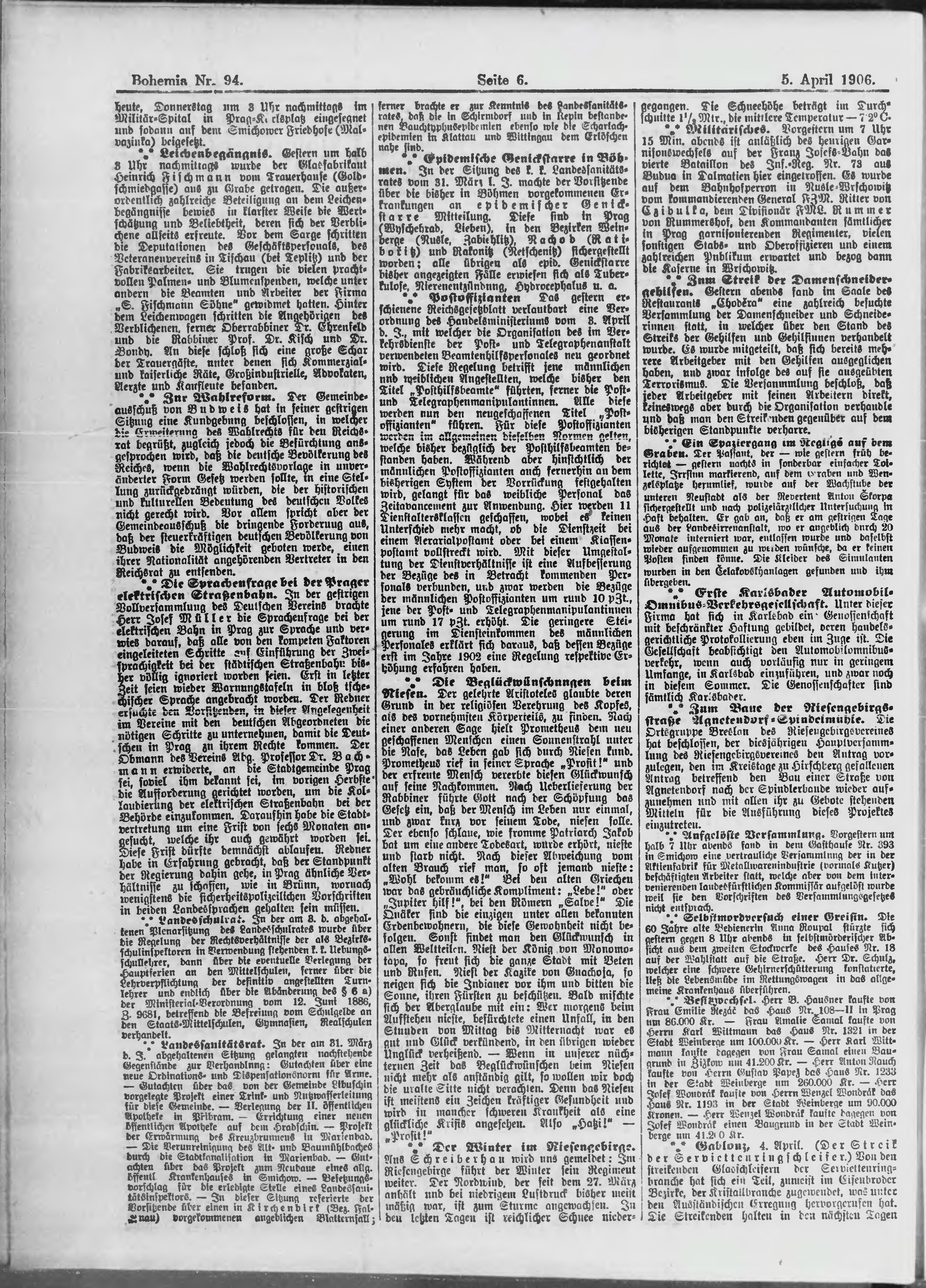 * Datum vydání výtisku: 5.4.1906 Číslo výtisku: 94 Poznámky k výtisku: ranní vydání;