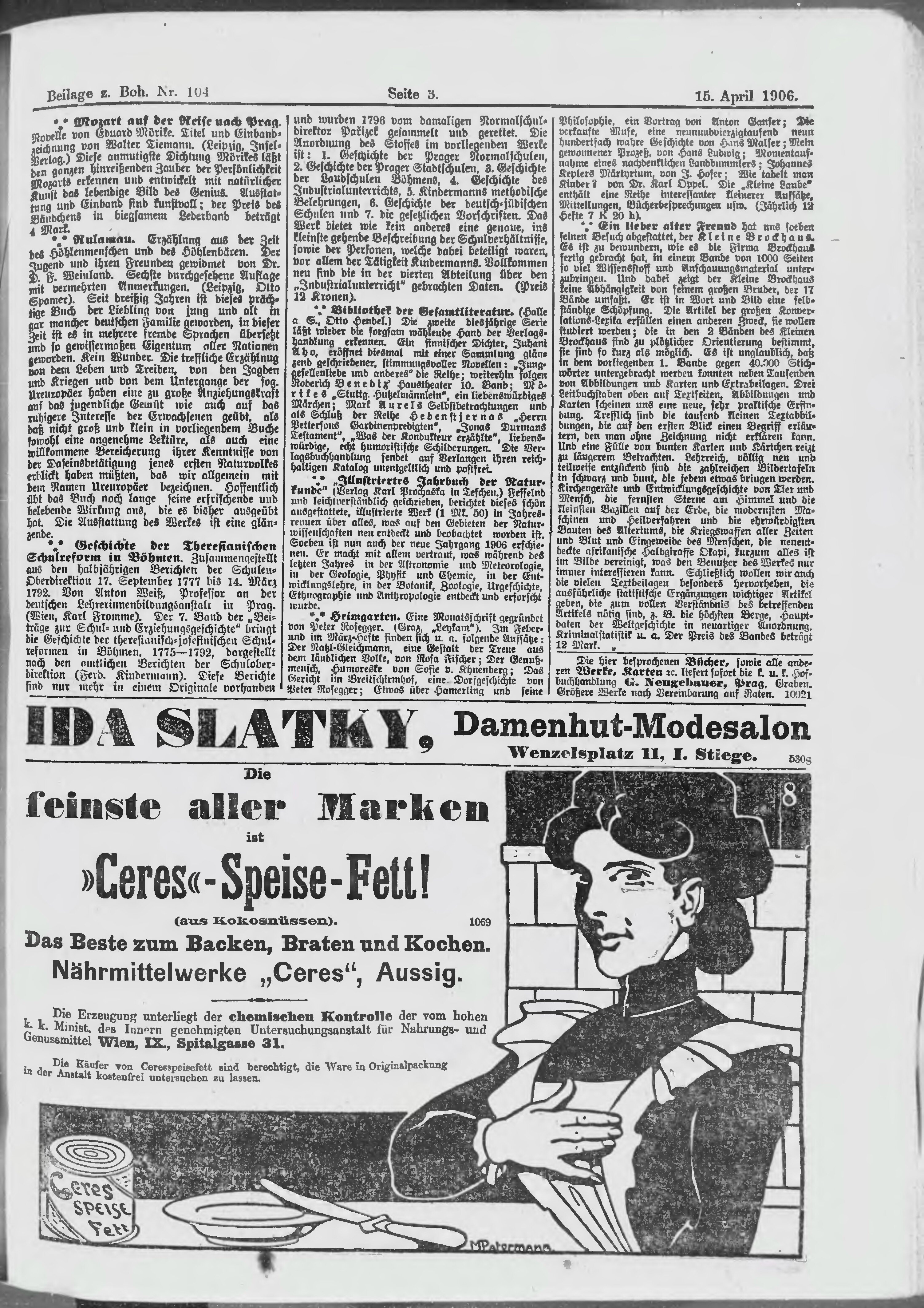 * Datum vydání výtisku: 15.4.1906 Číslo výtisku: 104 Typ výtisku: příloha
