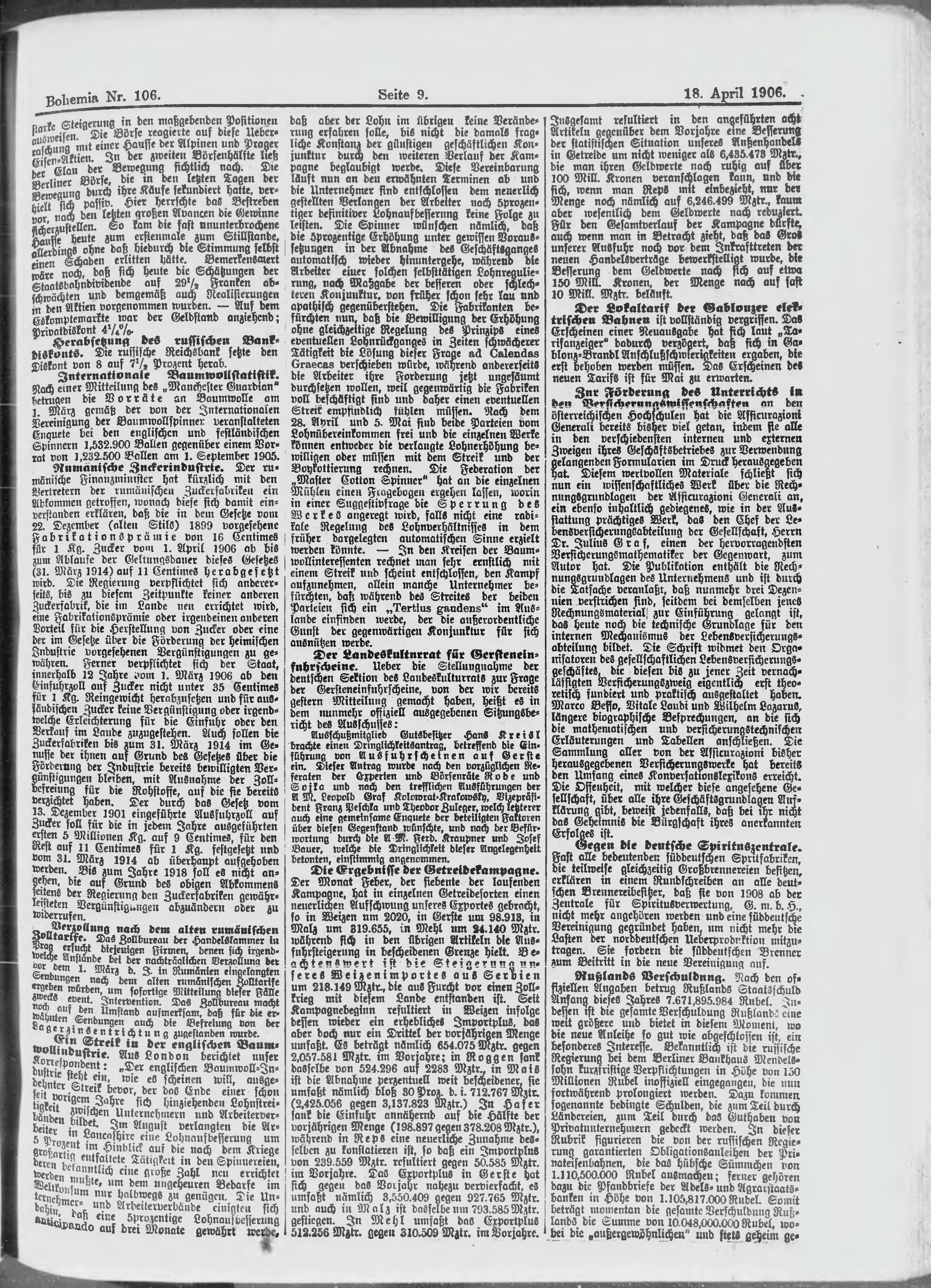 * Datum vydání výtisku: 18.4.1906 Číslo výtisku: 106 Poznámky k výtisku: ranní vydání;