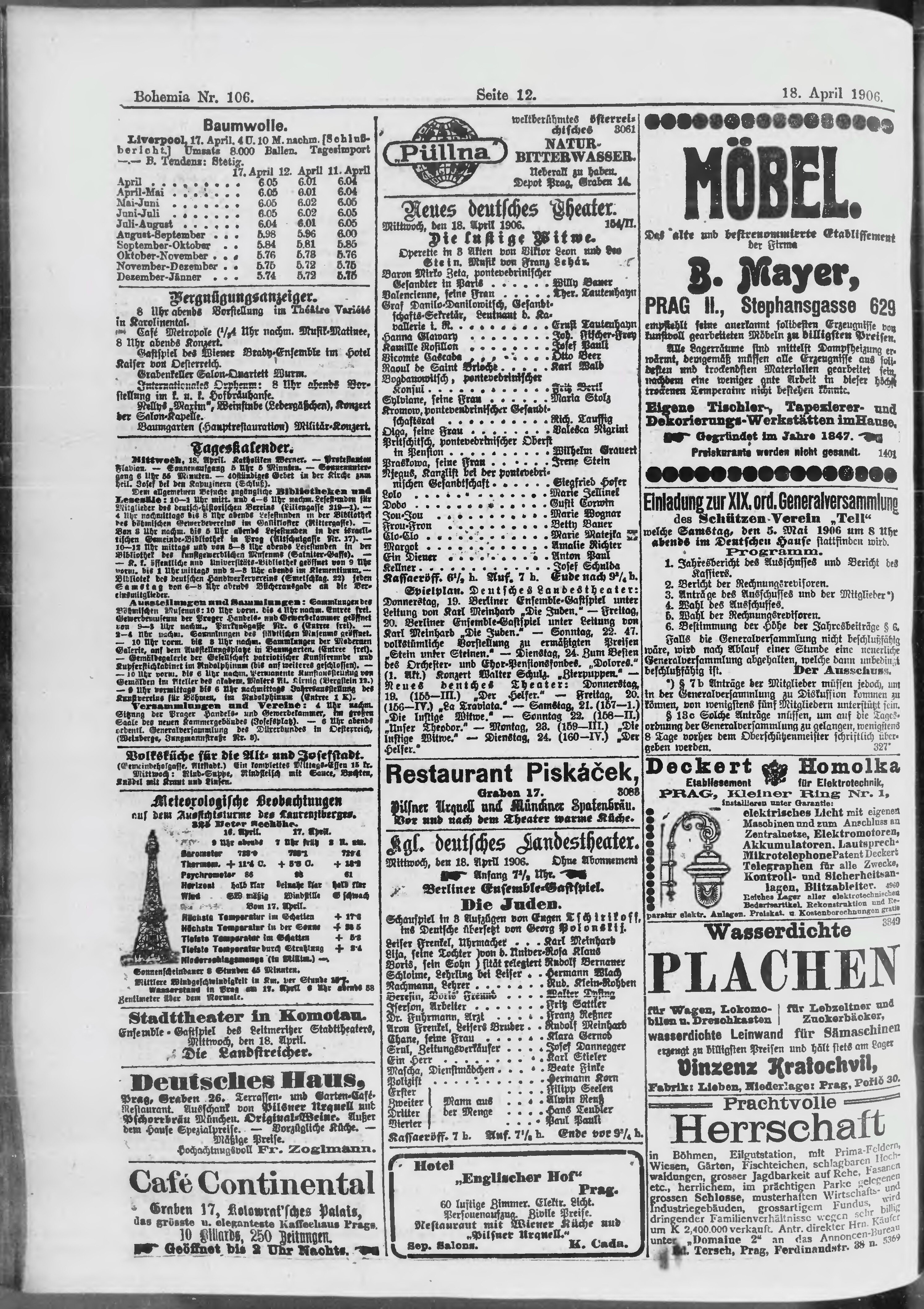 * Datum vydání výtisku: 18.4.1906 Číslo výtisku: 106 Poznámky k výtisku: ranní vydání;