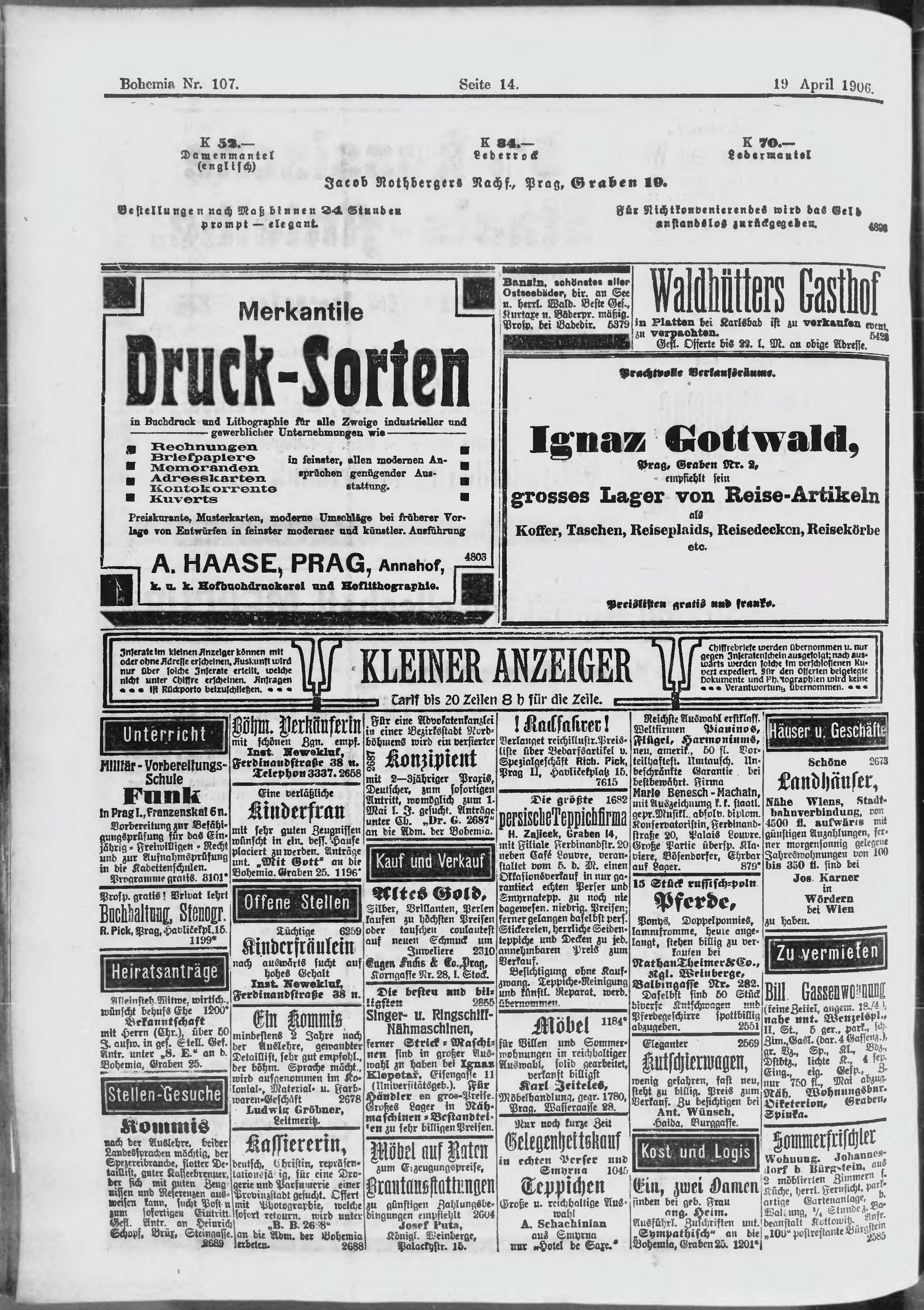 * Datum vydání výtisku: 19.4.1906 Číslo výtisku: 107 Poznámky k výtisku: ranní vydání;