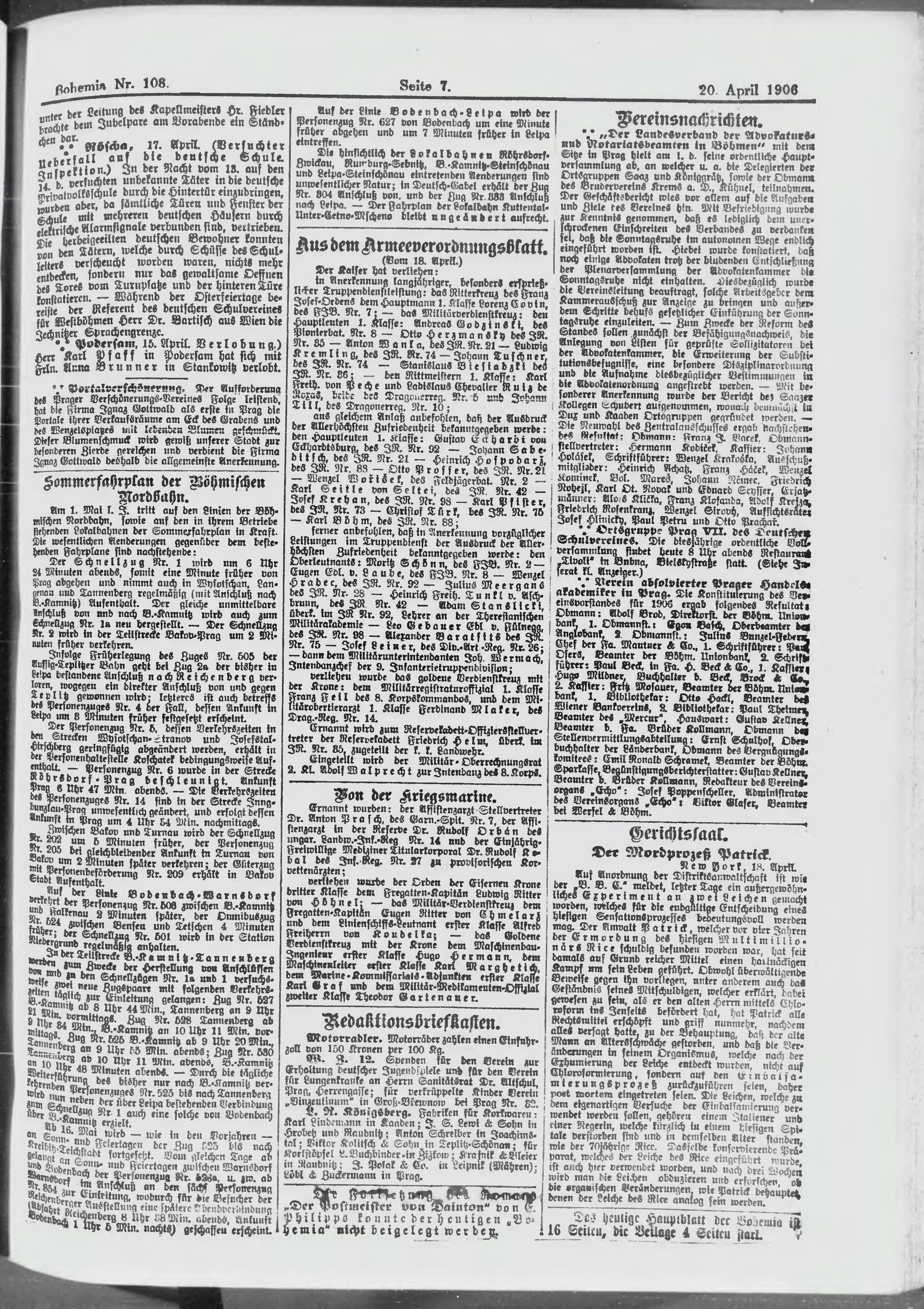 * Datum vydání výtisku: 20.4.1906 Číslo výtisku: 108 Poznámky k výtisku: ranní vydání;