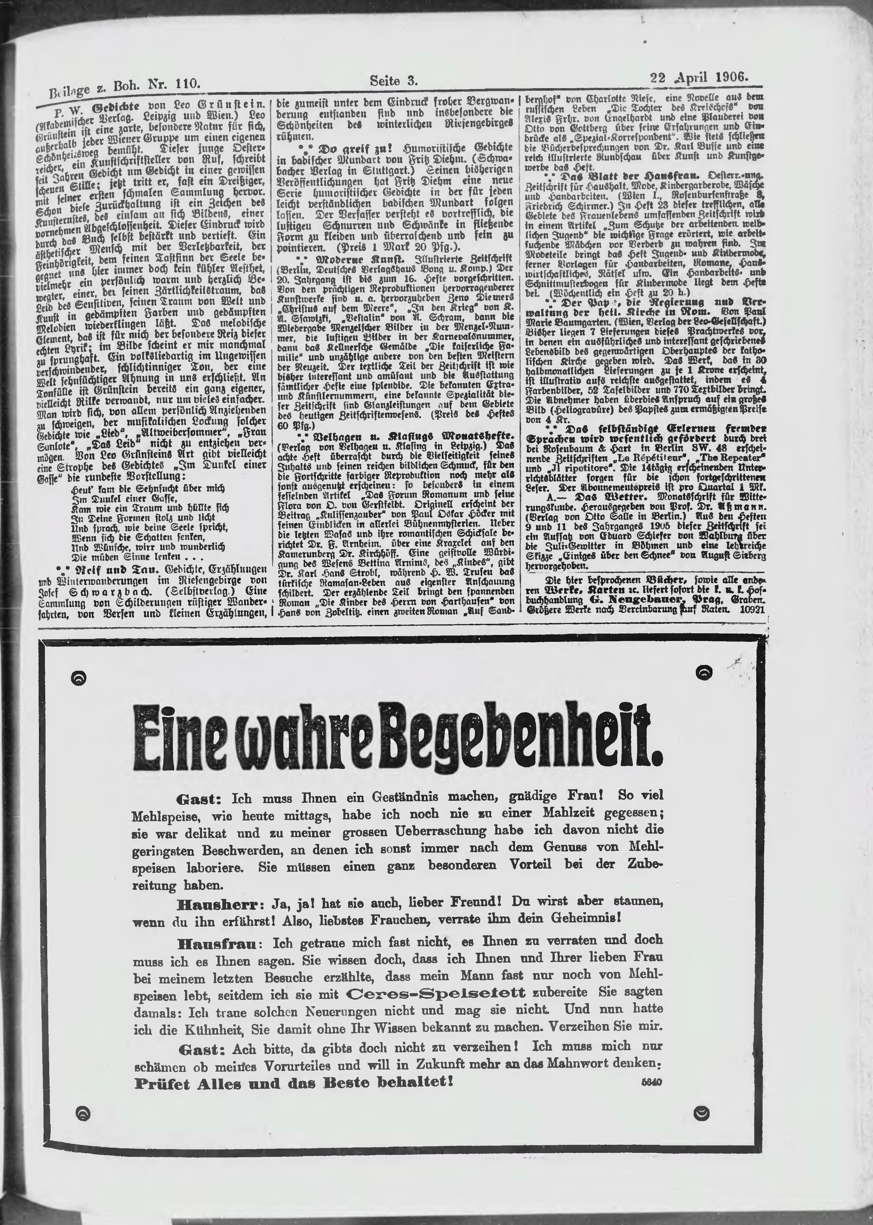 * Datum vydání výtisku: 22.4.1906 Číslo výtisku: 110 Typ výtisku: příloha