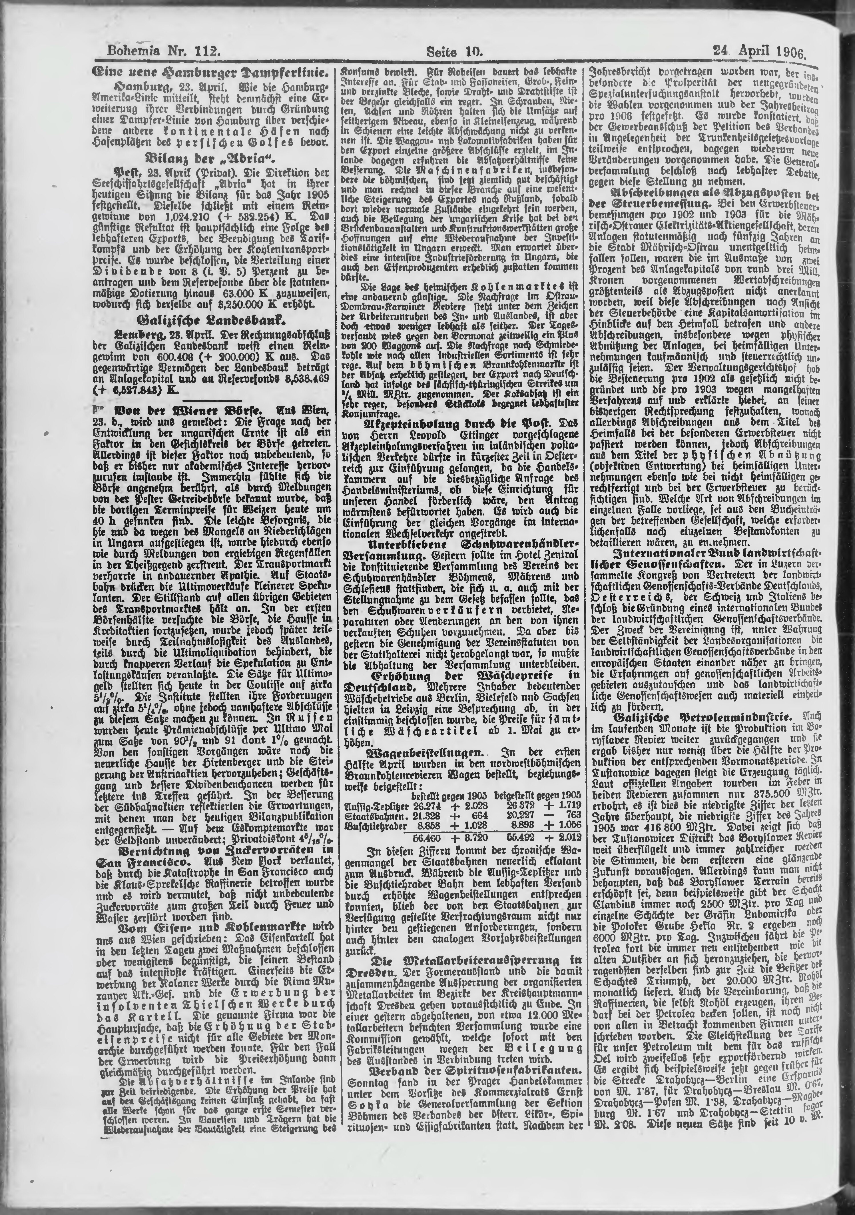 * Datum vydání výtisku: 24.4.1906 Číslo výtisku: 112 Poznámky k výtisku: ranní vydání;