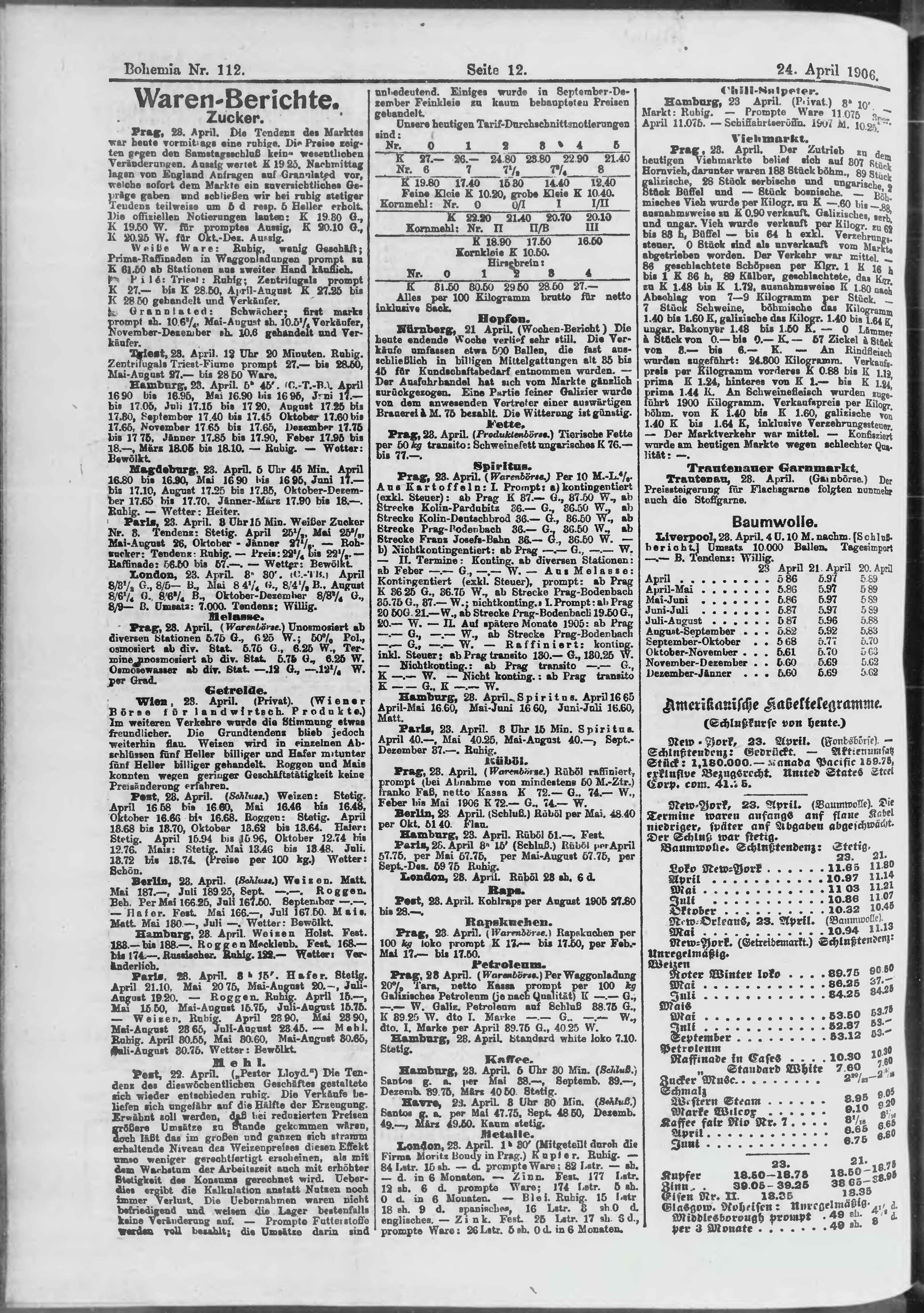* Datum vydání výtisku: 24.4.1906 Číslo výtisku: 112 Poznámky k výtisku: ranní vydání;