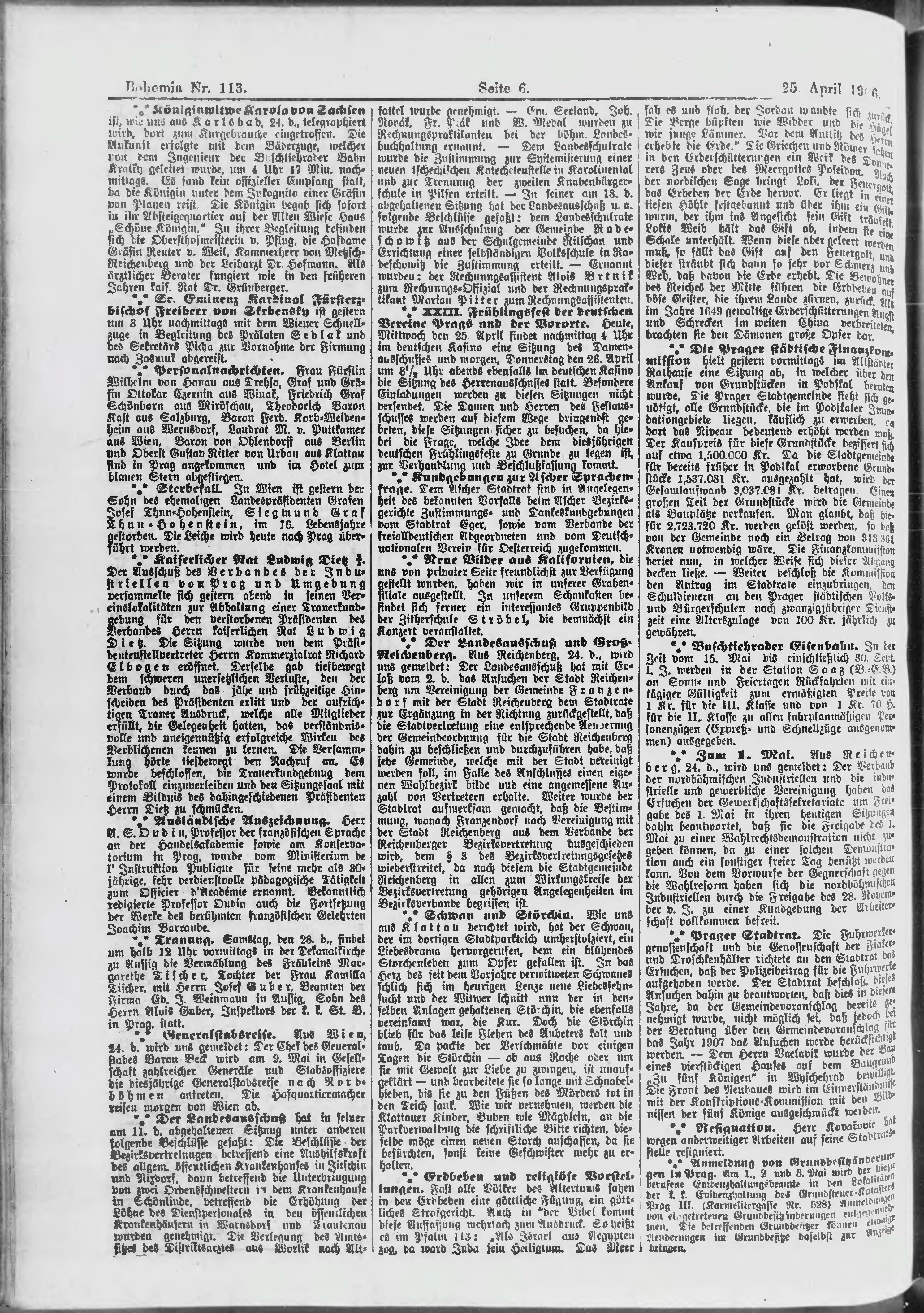 * Datum vydání výtisku: 25.4.1906 Číslo výtisku: 113 Poznámky k výtisku: ranní vydání;