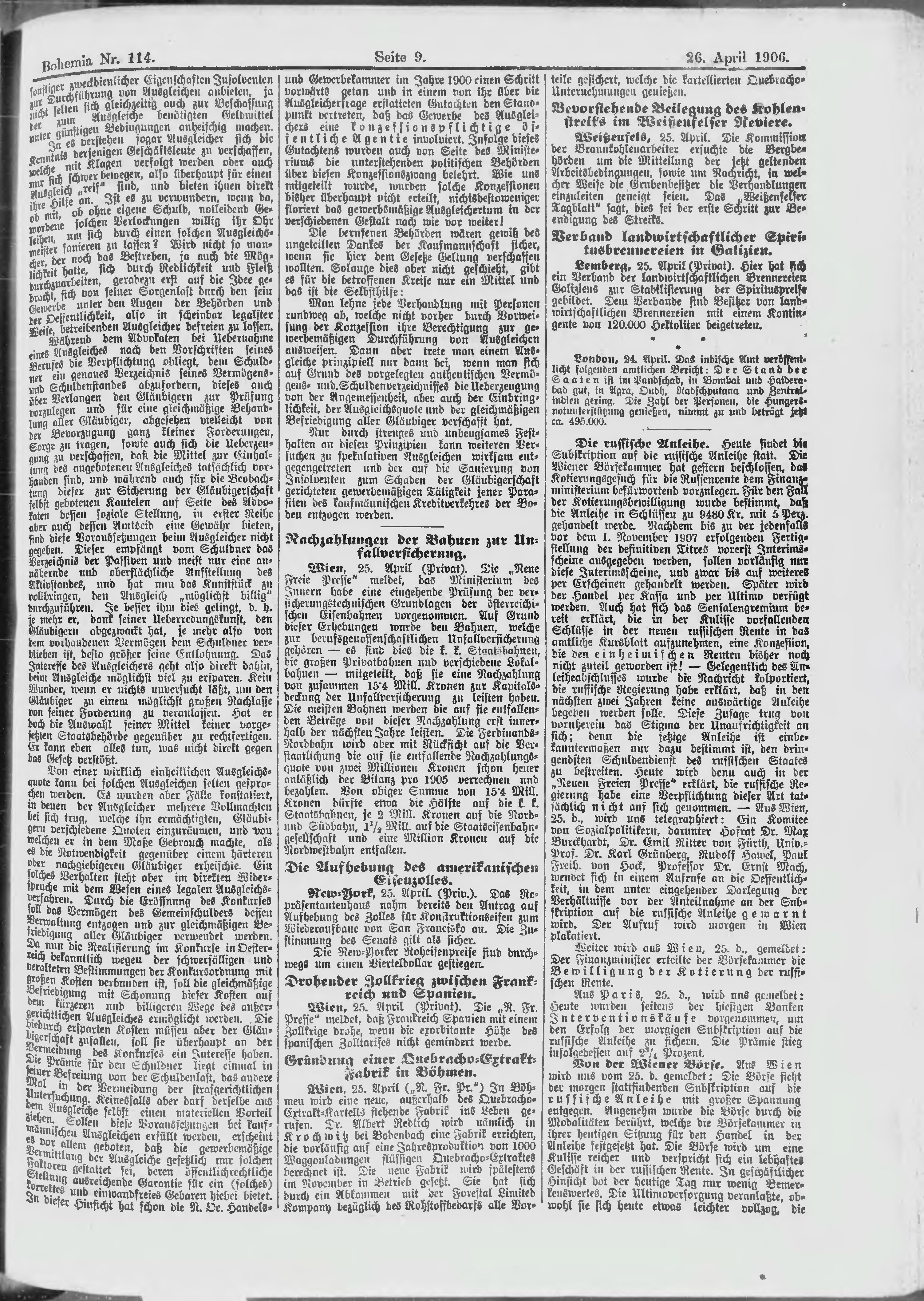 * Datum vydání výtisku: 26.4.1906 Číslo výtisku: 114 Poznámky k výtisku: ranní vydání;