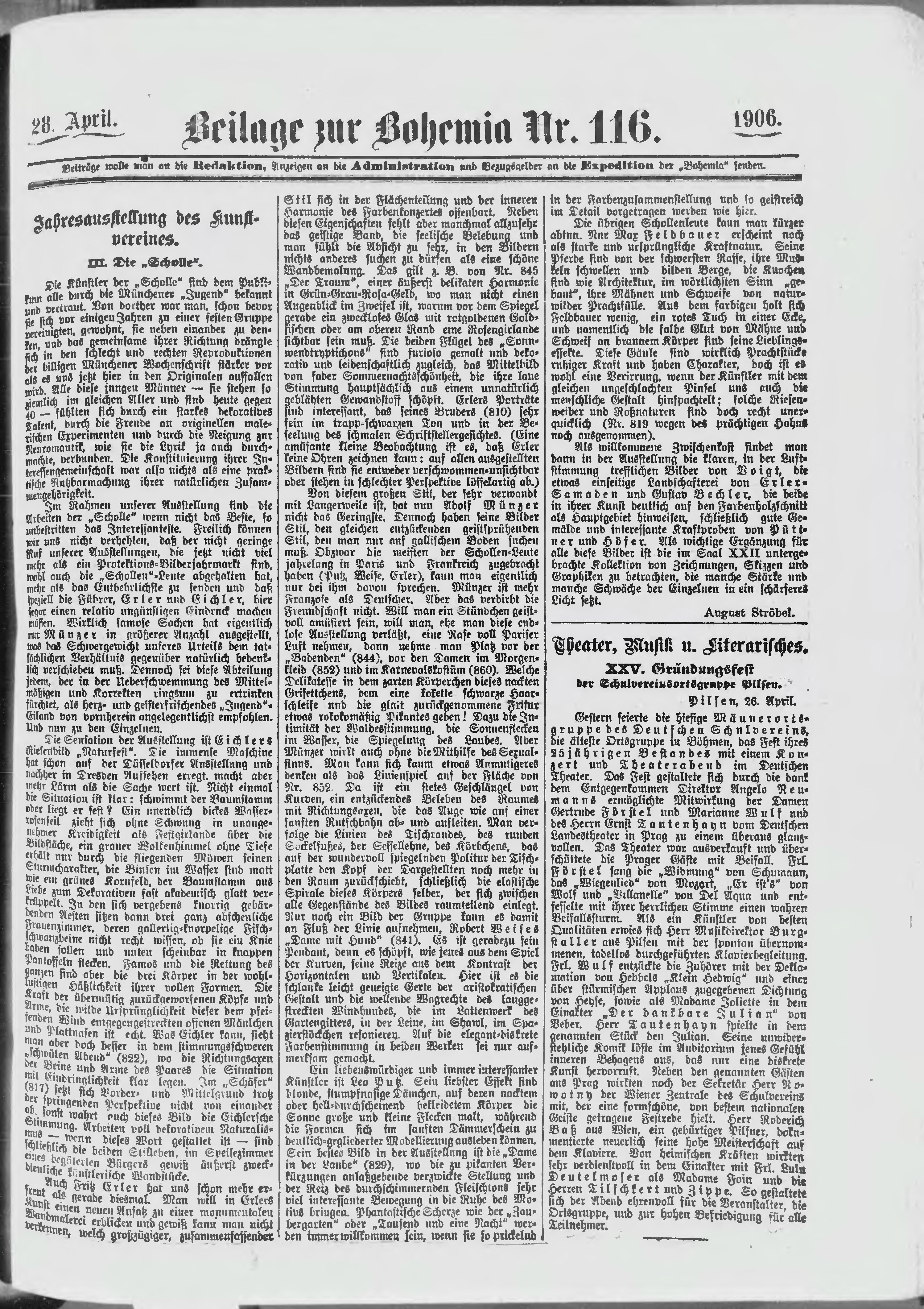 * Datum vydání výtisku: 28.4.1906 Číslo výtisku: 116 Typ výtisku: příloha