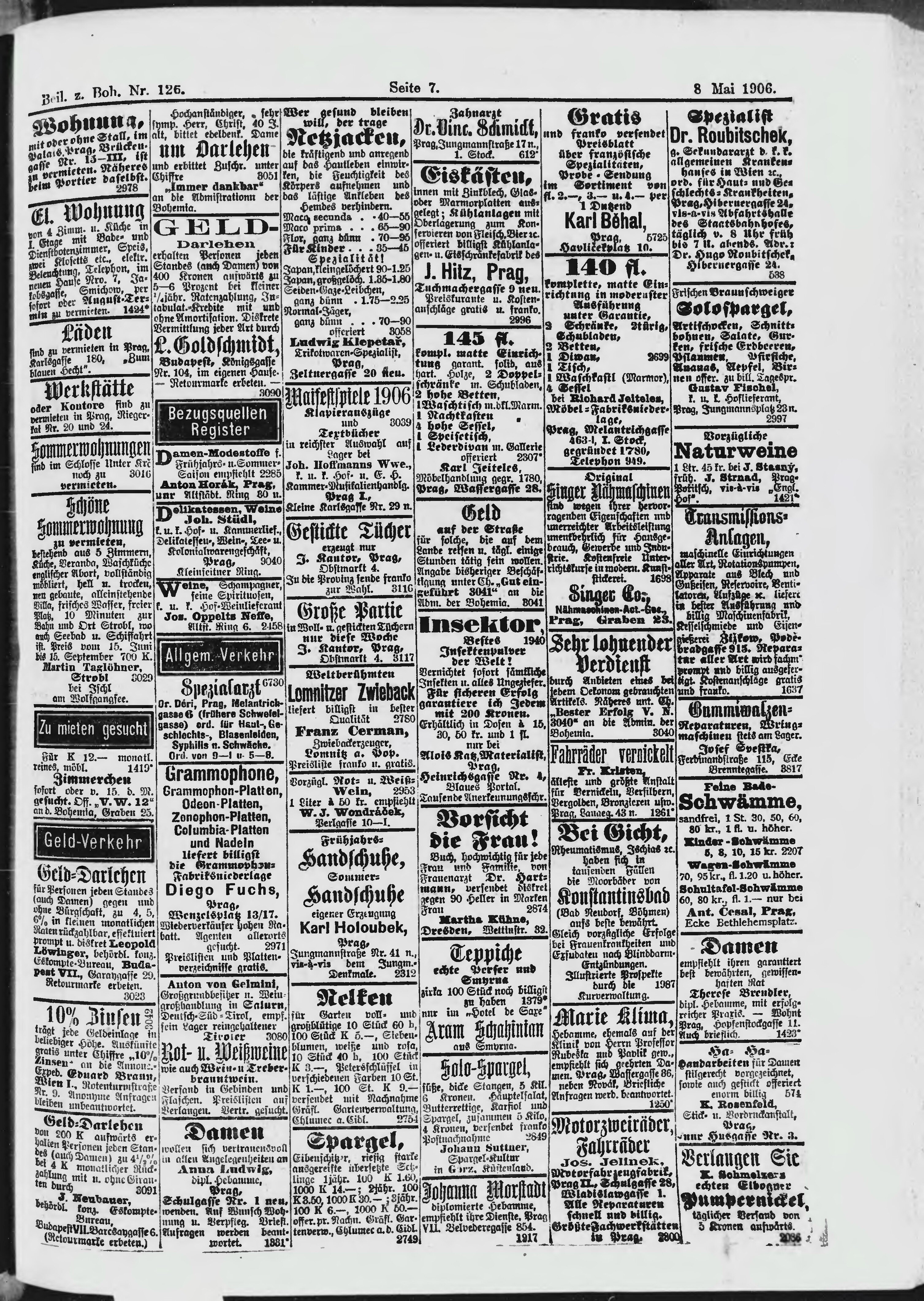 * Datum vydání výtisku: 8.5.1906 Číslo výtisku: 126 Typ výtisku: příloha